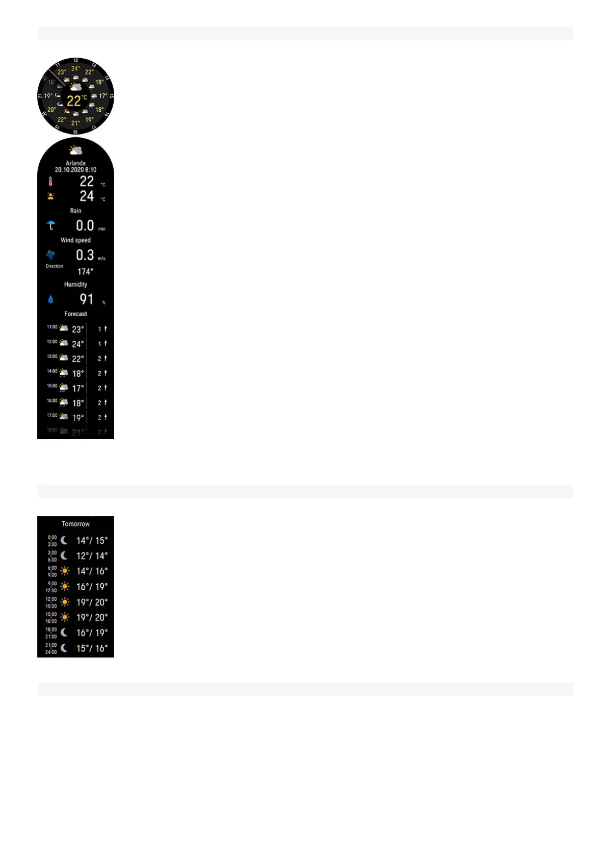 View the current day's hourly forecast. Tap the display to view more detailed weather