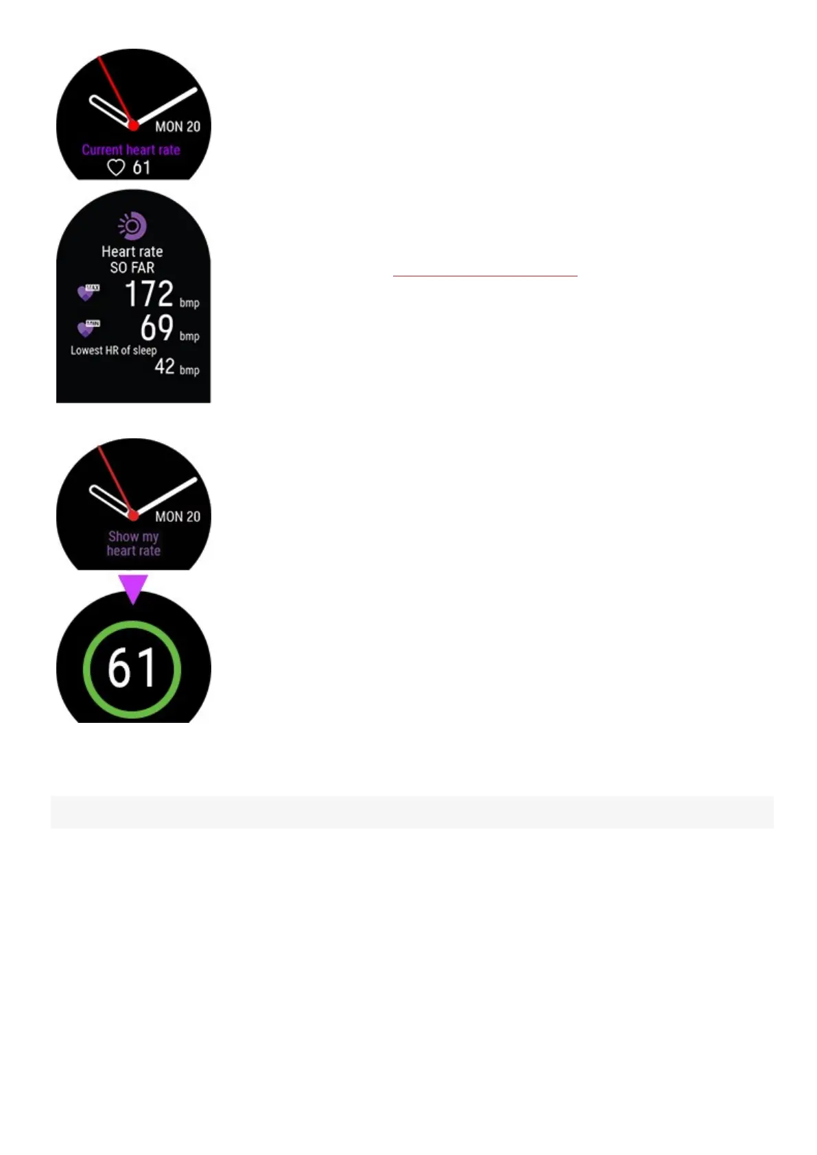 your heart rate and displays it on the Heart rate watch face.