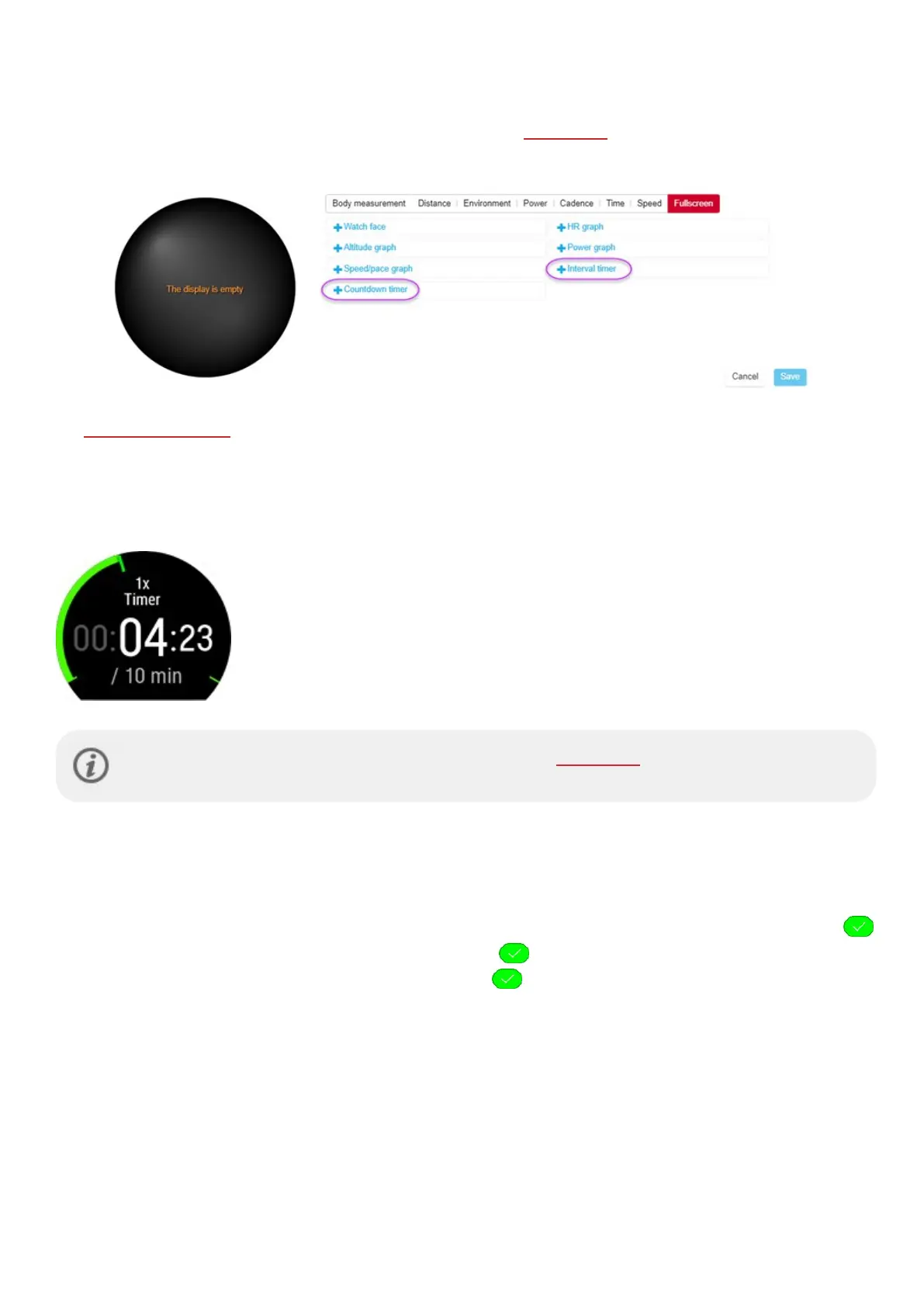 setting the timer view on for your current training session from the Quick menu or by adding the timers to the training