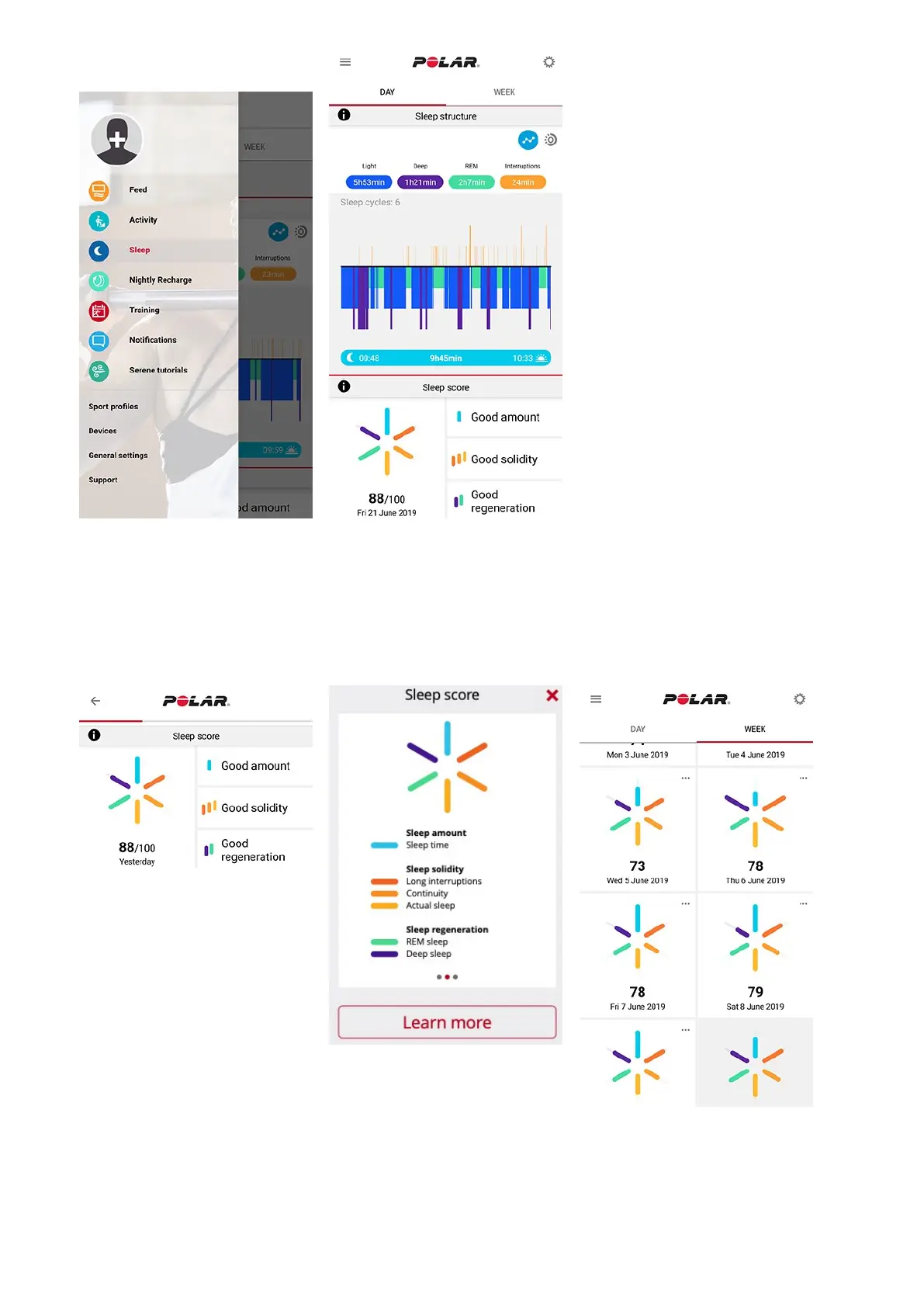 view you can see how your sleep score and sleep quality (solidity and regeneration themes) vary during the