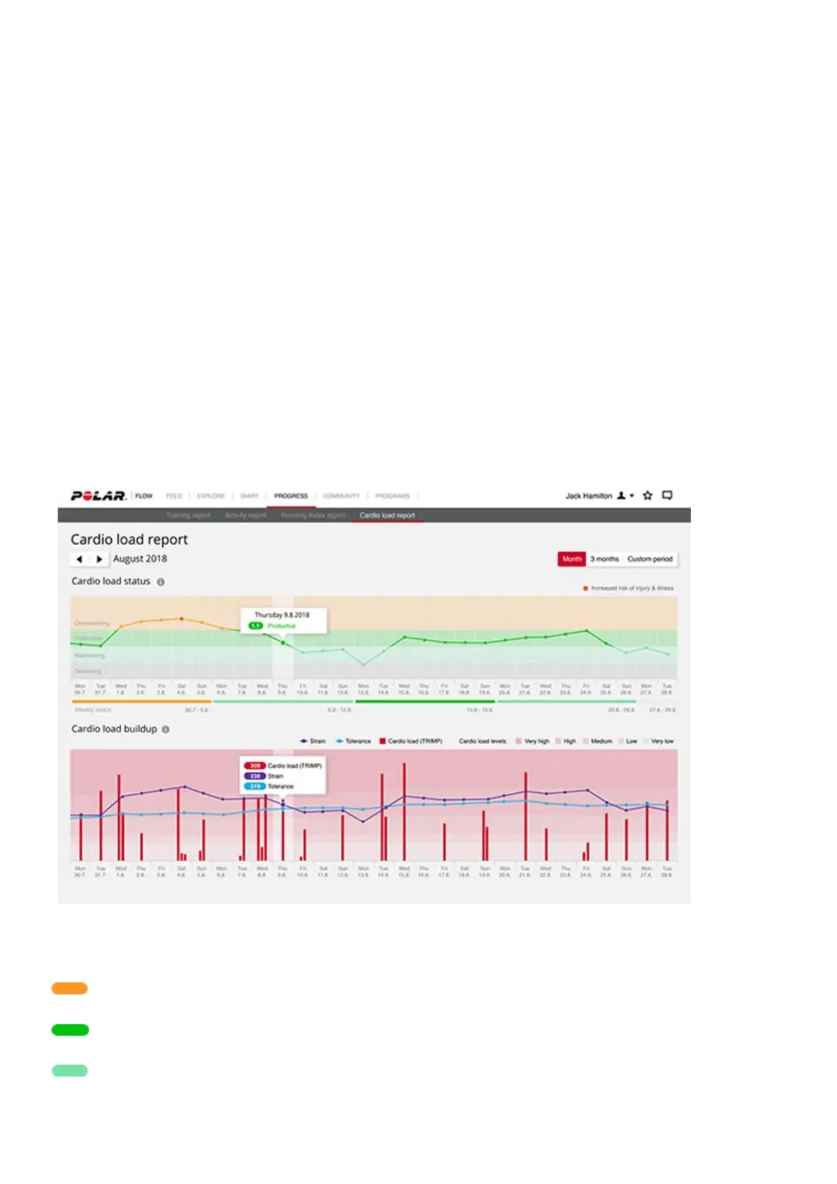 To view your Cardio load status and Cardio load buildup in the Flow web service, go to Progress > Cardio Load