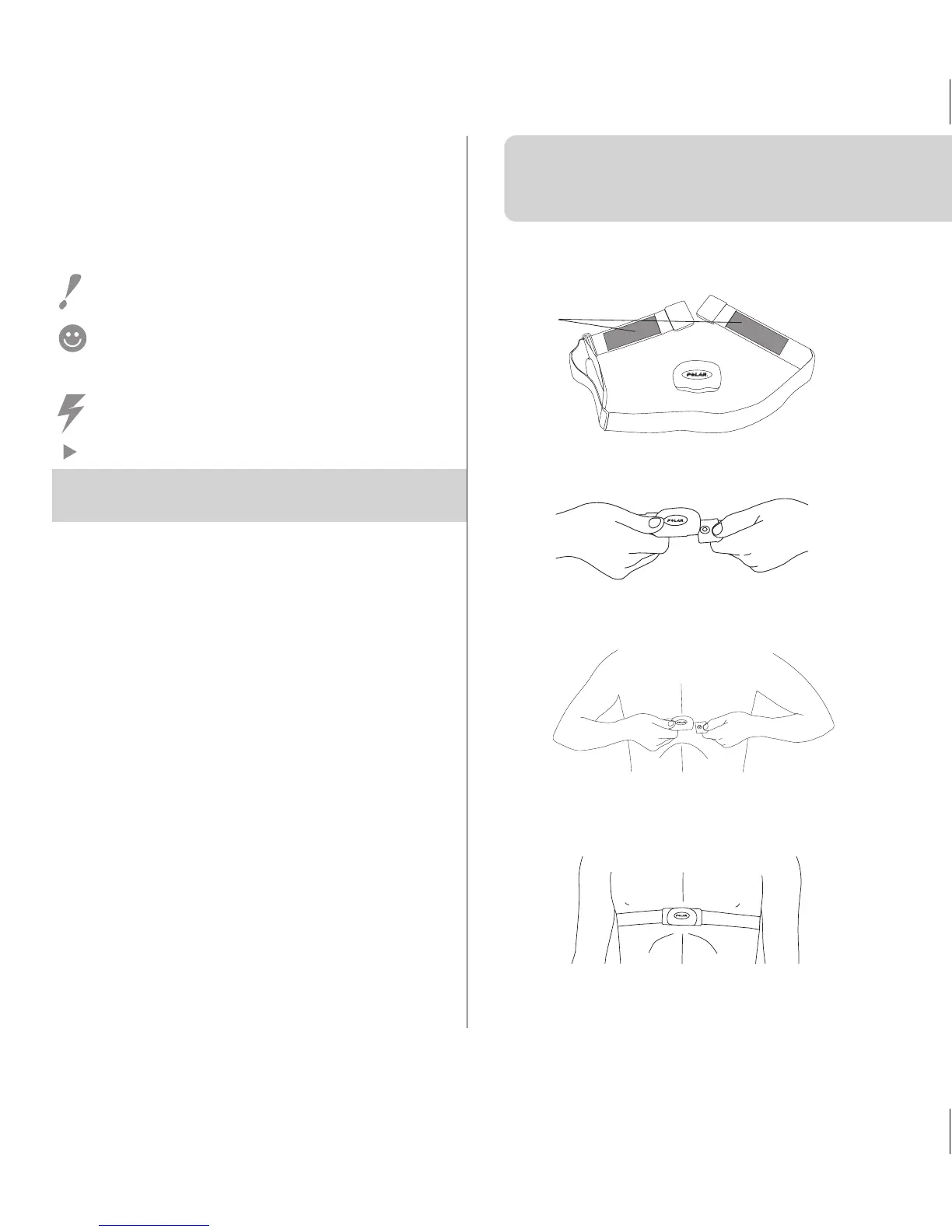 1. Maak de elektroden van de borstband vochtig met