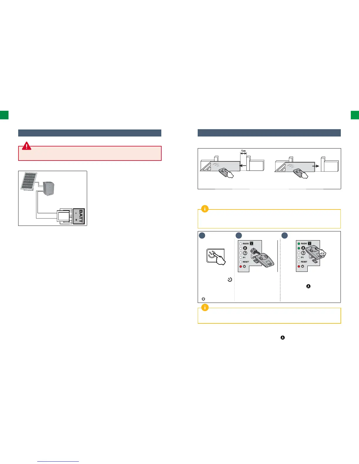 of pedestrian entry must be deactivated. The indicator light comes on then goes out. Opening for