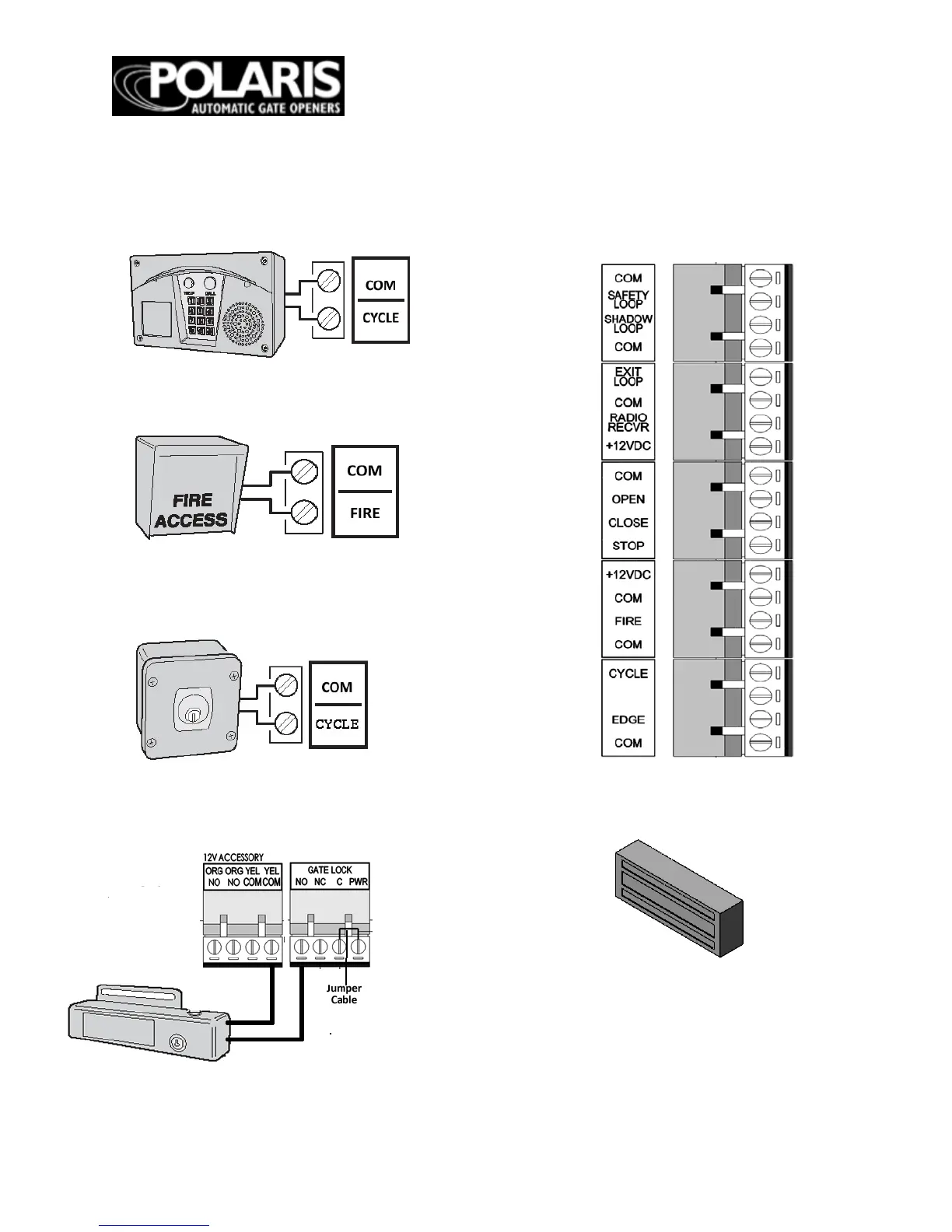 Polaris Automatic Gate Operators 500 Single - Accessory Hook Up Diagram: Communication and Locks; Communication and Lock Accessory Wiring