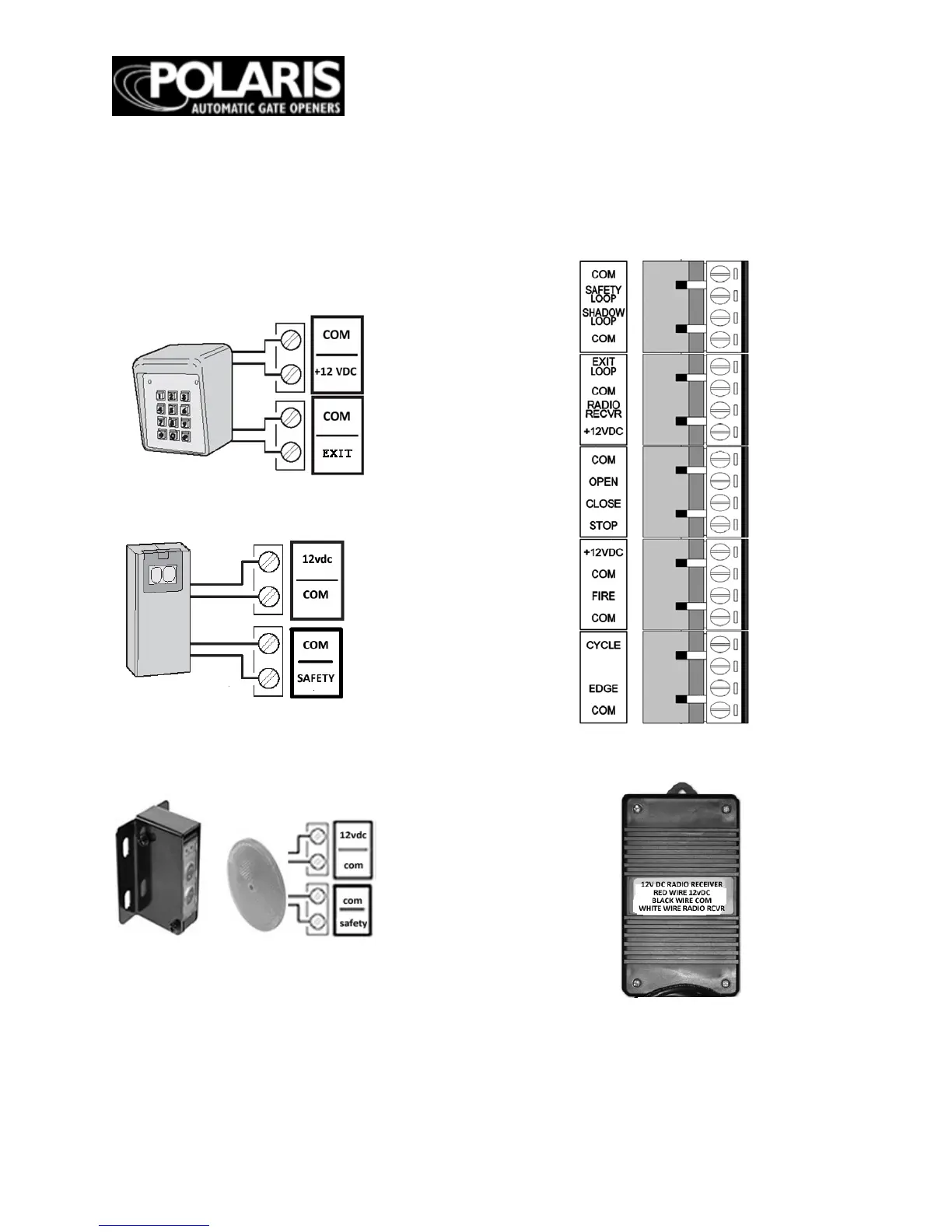 Polaris Automatic Gate Operators 500 Single - Accessory Hook Up Diagram: Keypads and Photo Eyes; Keypad and Photo Eye Beam Wiring