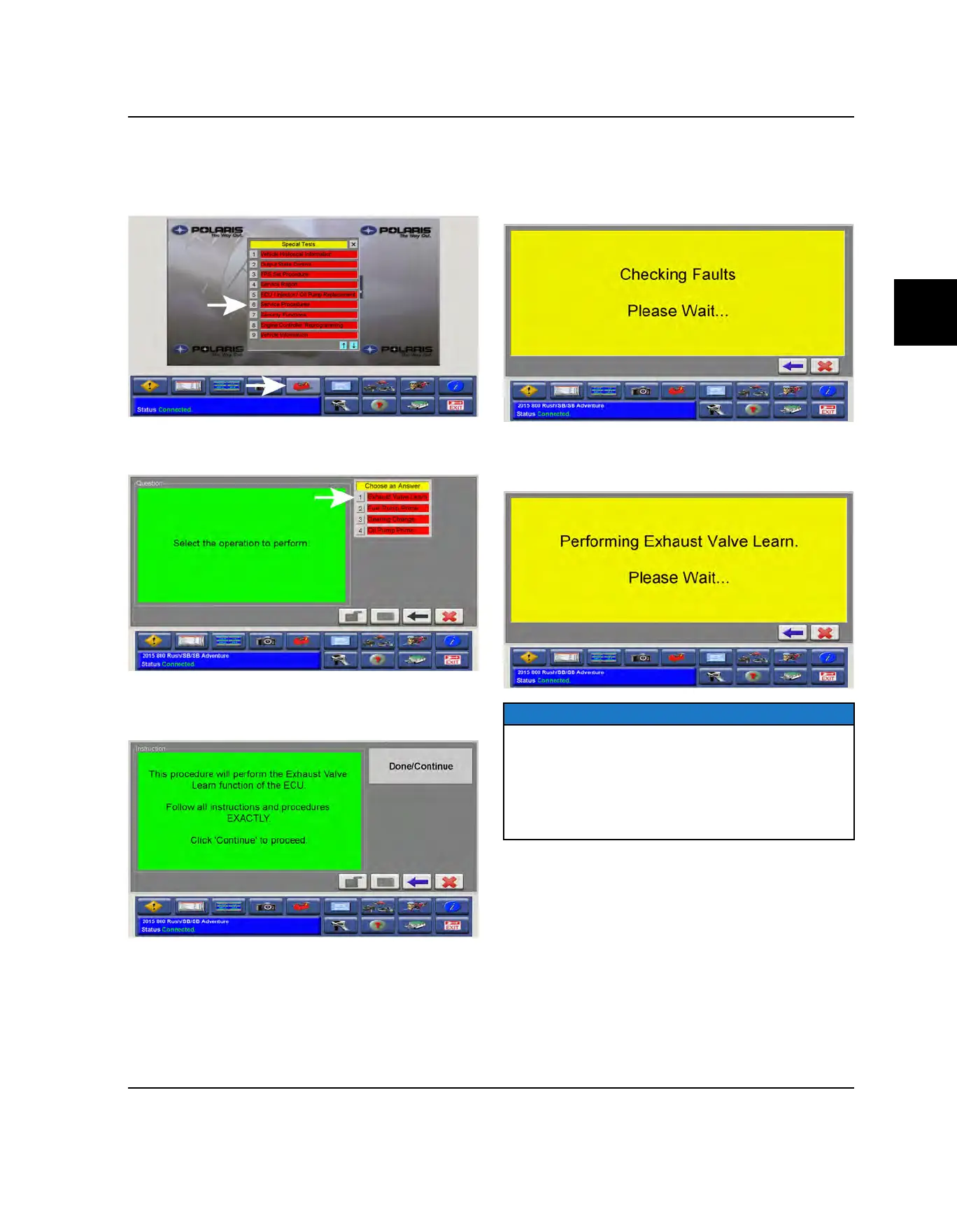desired operation. Select: Exhaust Valve Learn.