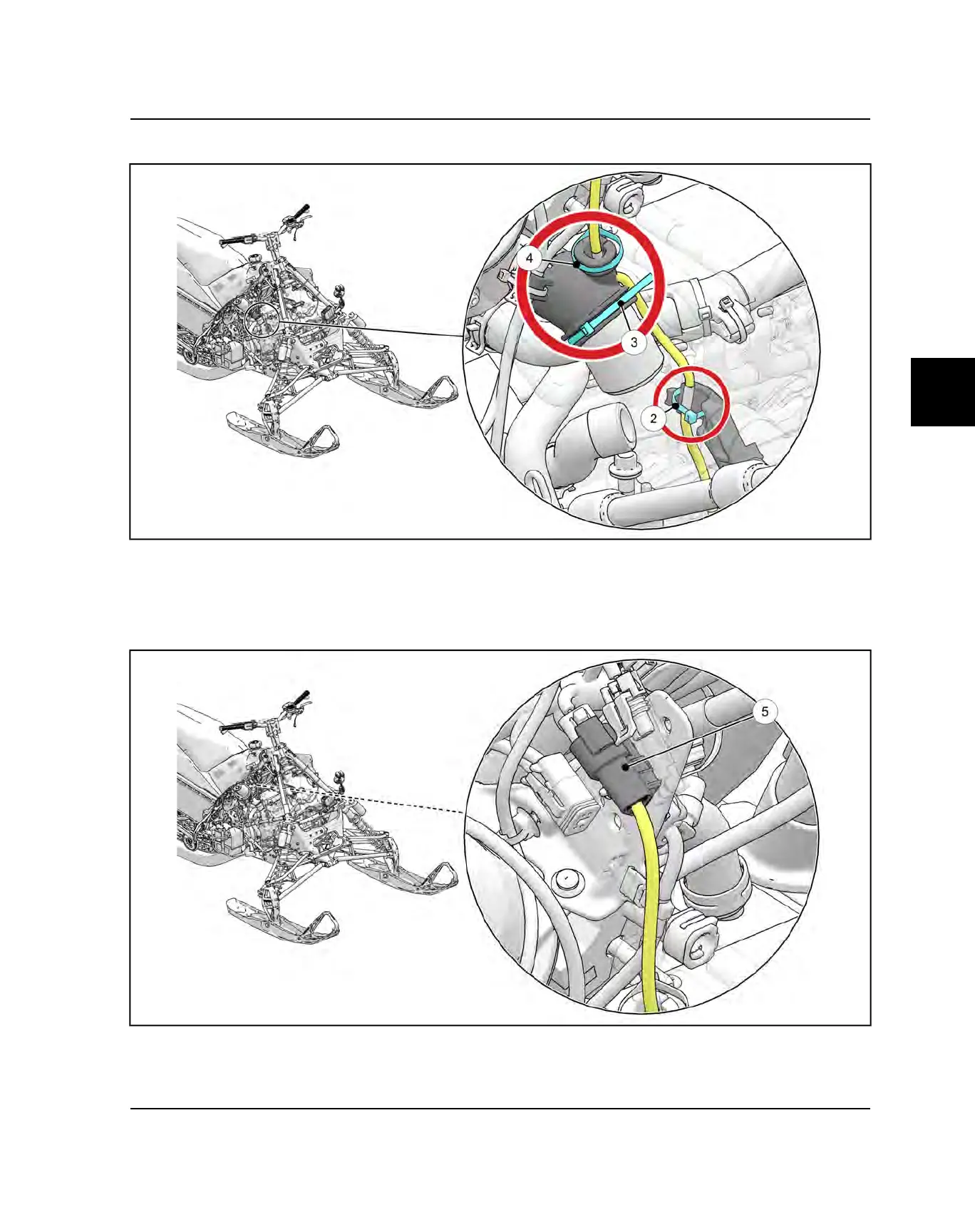 . Continue to route the TPS wire lead upward and secure in the hose/electrical support with a