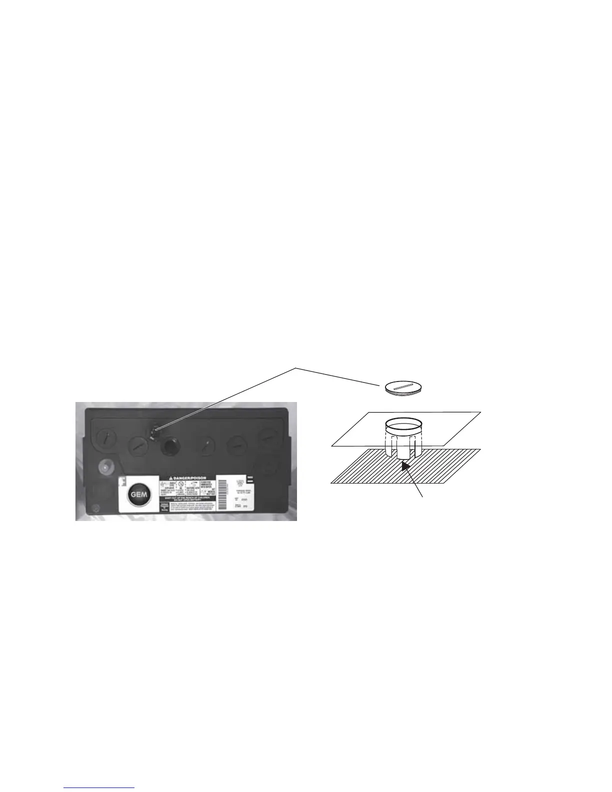 distilled water as needed. Do not overfill. Reinstall the fill well cap securely.