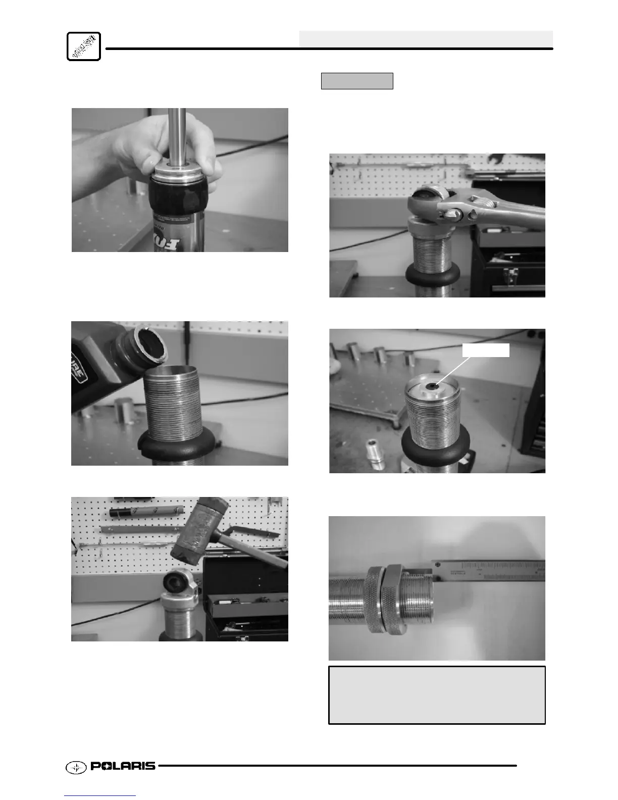 inside the valve piston. Allow shock to stand for