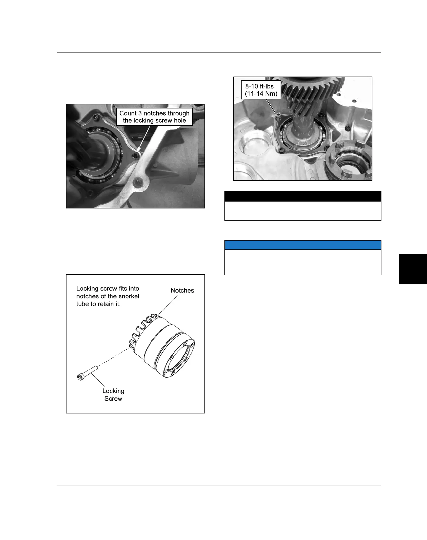 The snorkel shaft and pinion shaft must be installed