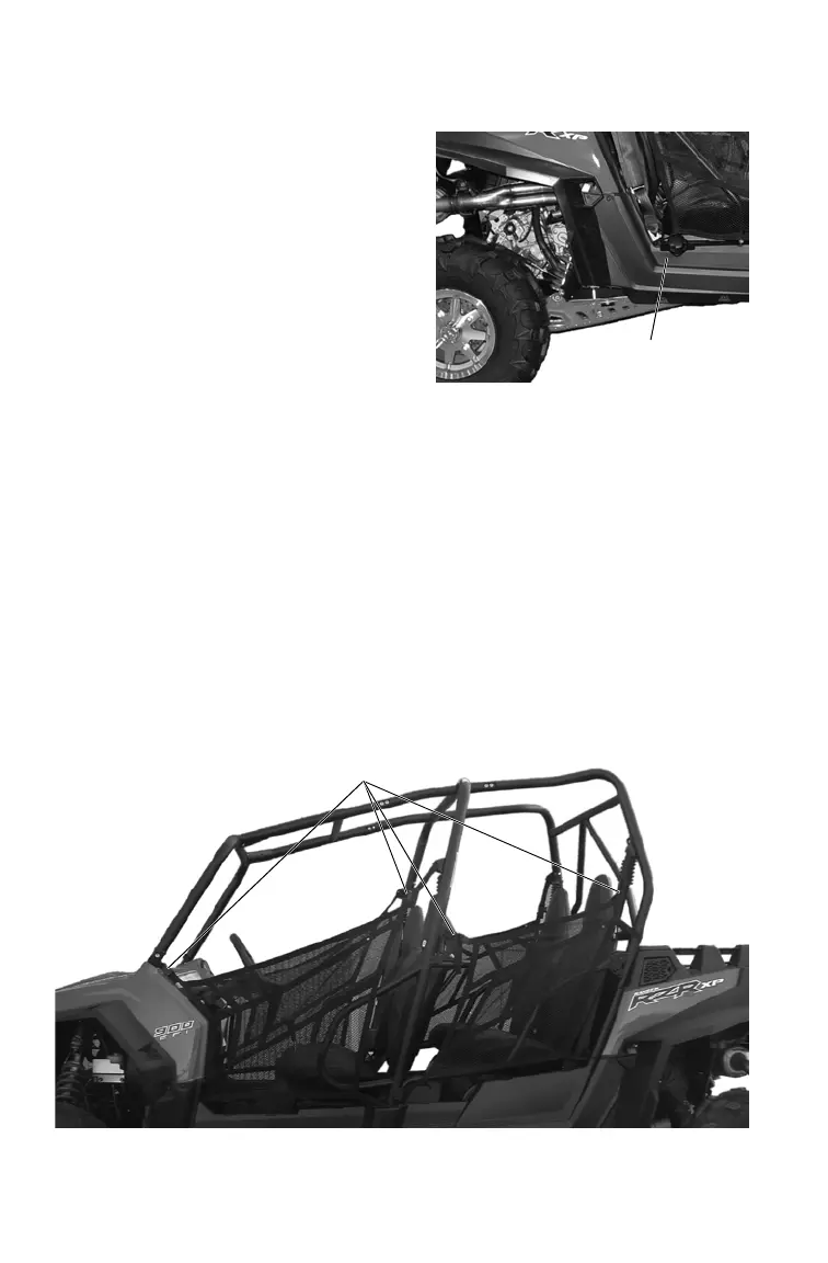 of the vehicle. Use the strap adjusters to tighten any loose straps.