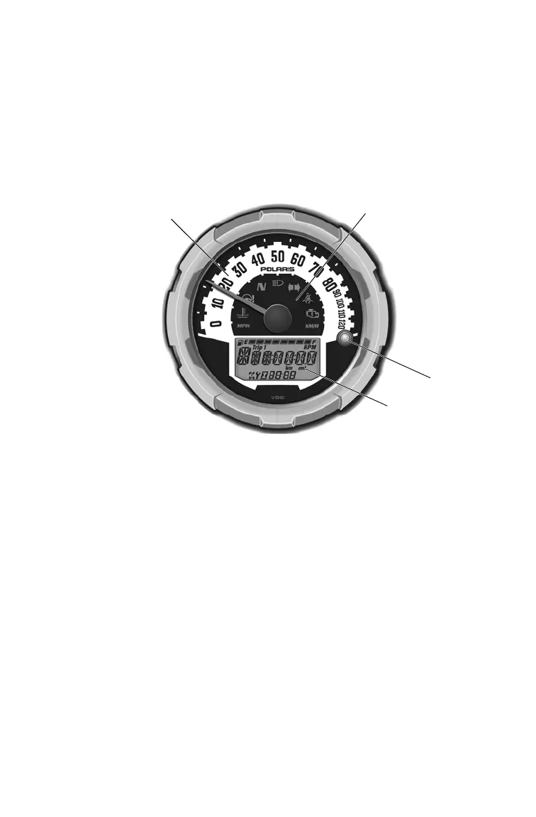 The speedometer displays vehicle speed in either miles per hour (MPH)