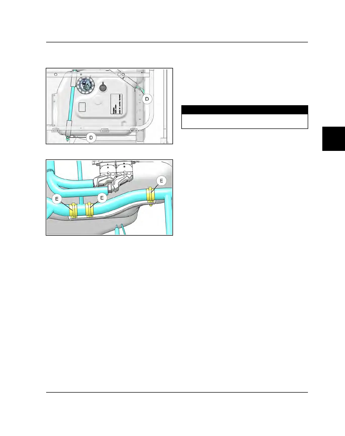 7. Remove the two fuel tank bracket fasteners (D) that