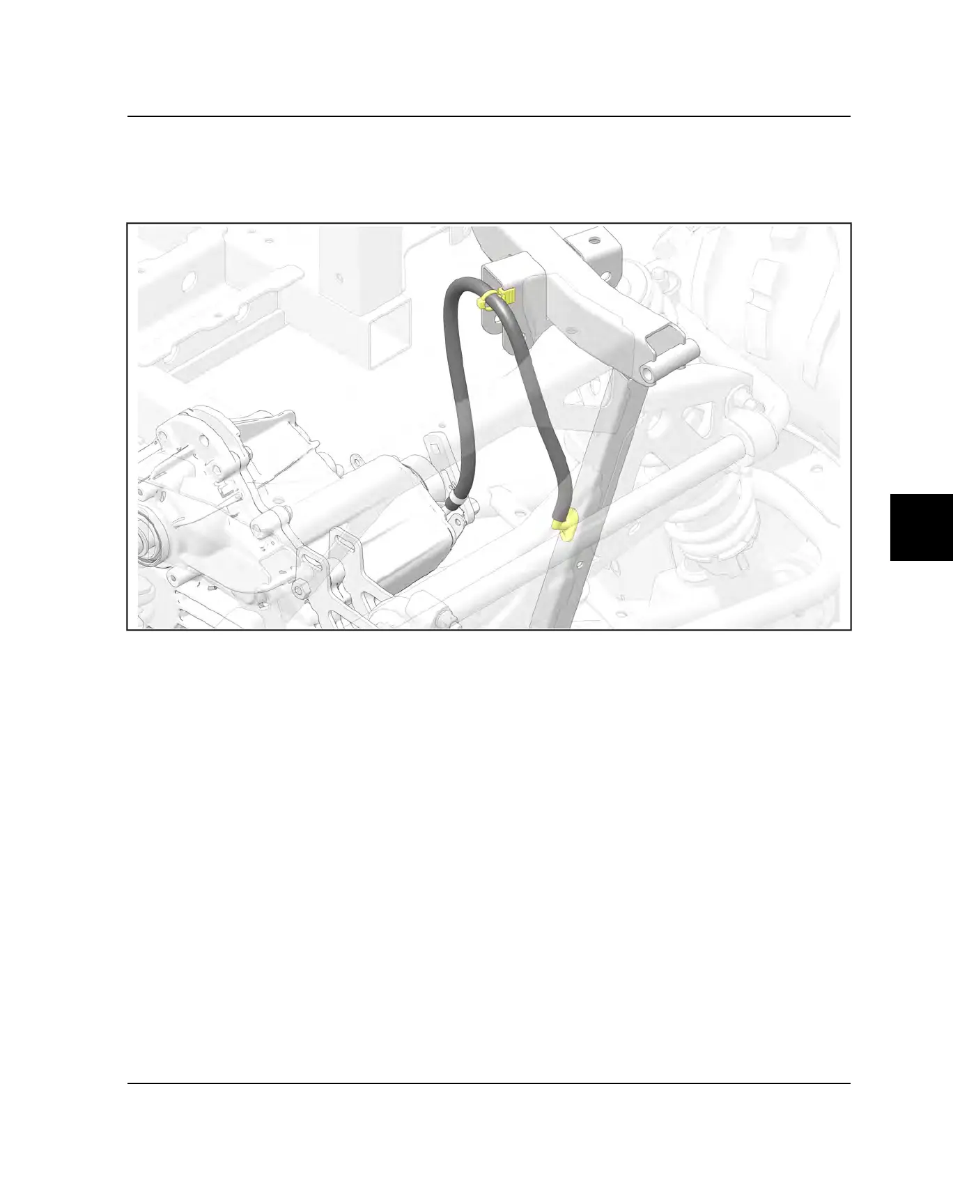 The transmission vent line runs along the rear passenger side frame. It is secured along the front frame by one