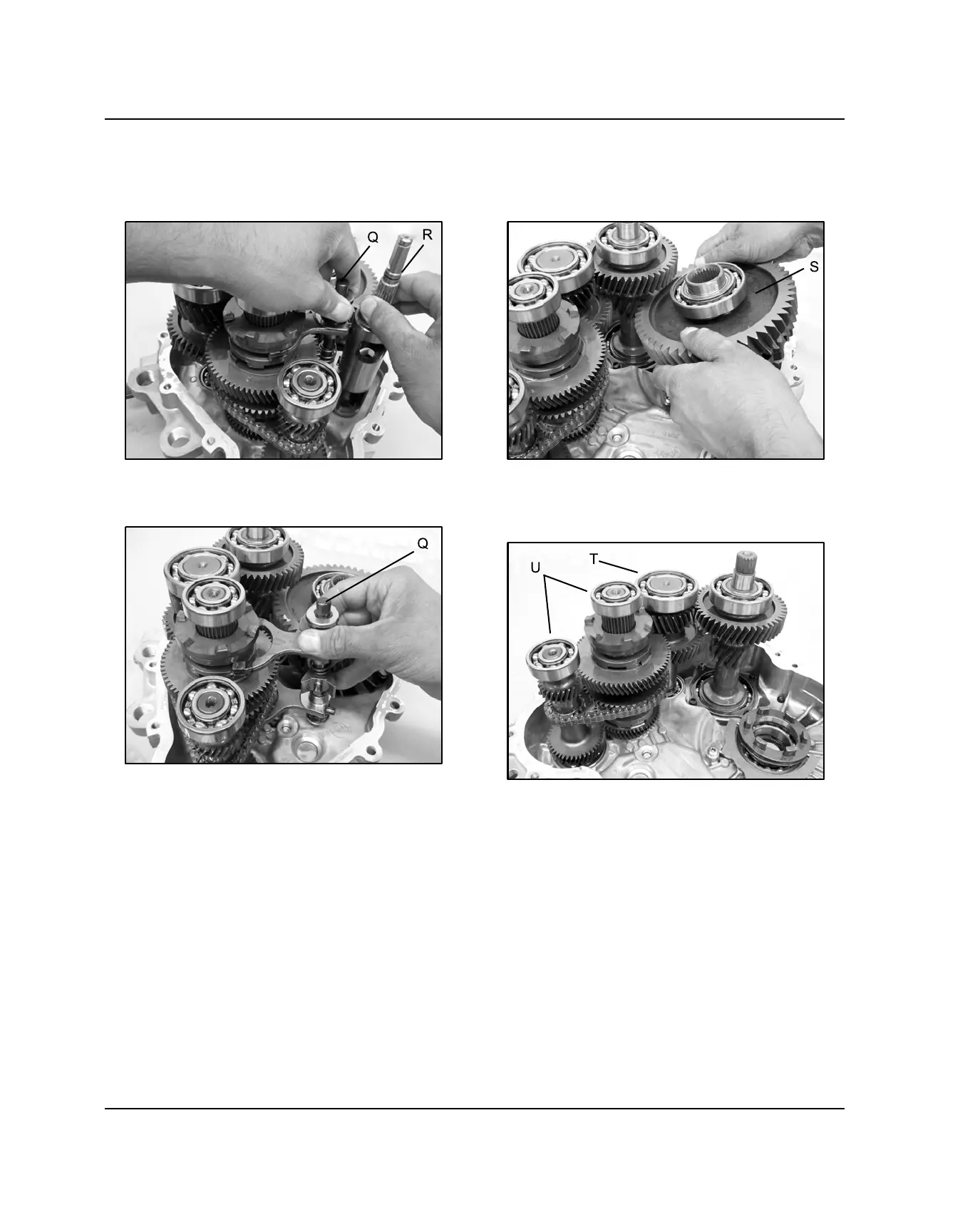 13. Remove the shift shaft rail (Q) and shift forks from