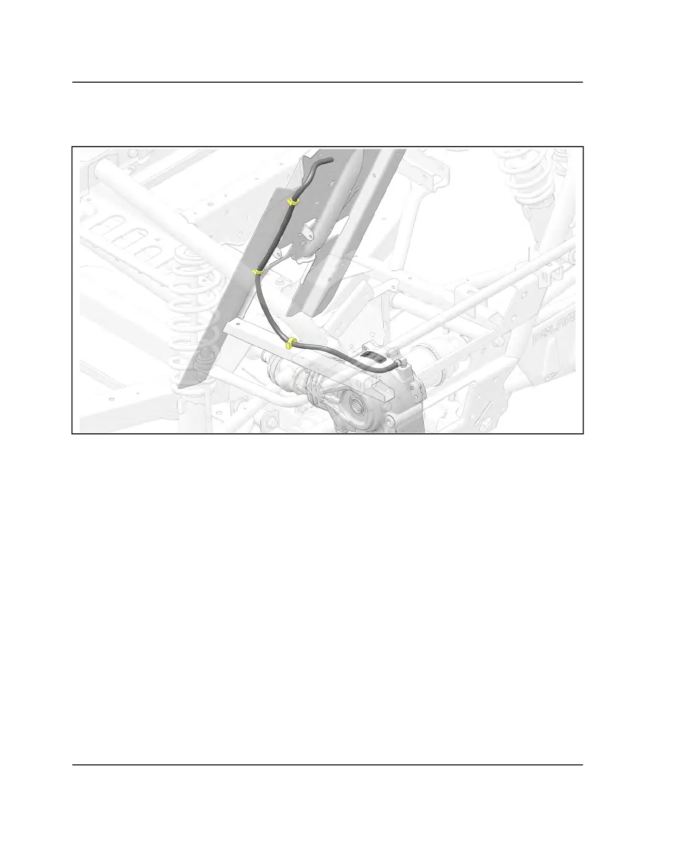 The front gearcase vent line runs along the front passenger side frame. It is secured along the front frame by three