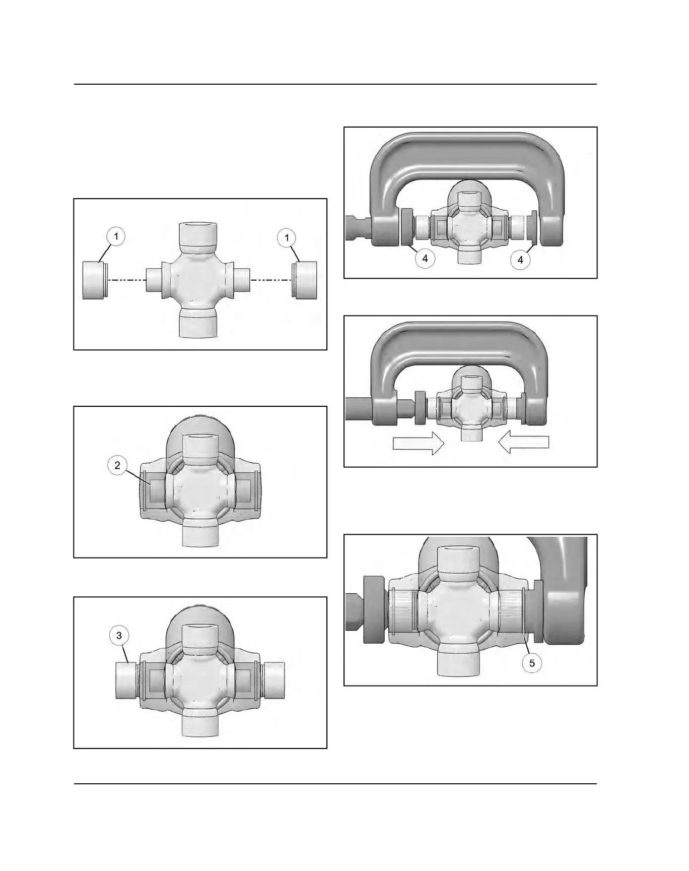 6. Tighten clamp to install caps simultaneously into yoke