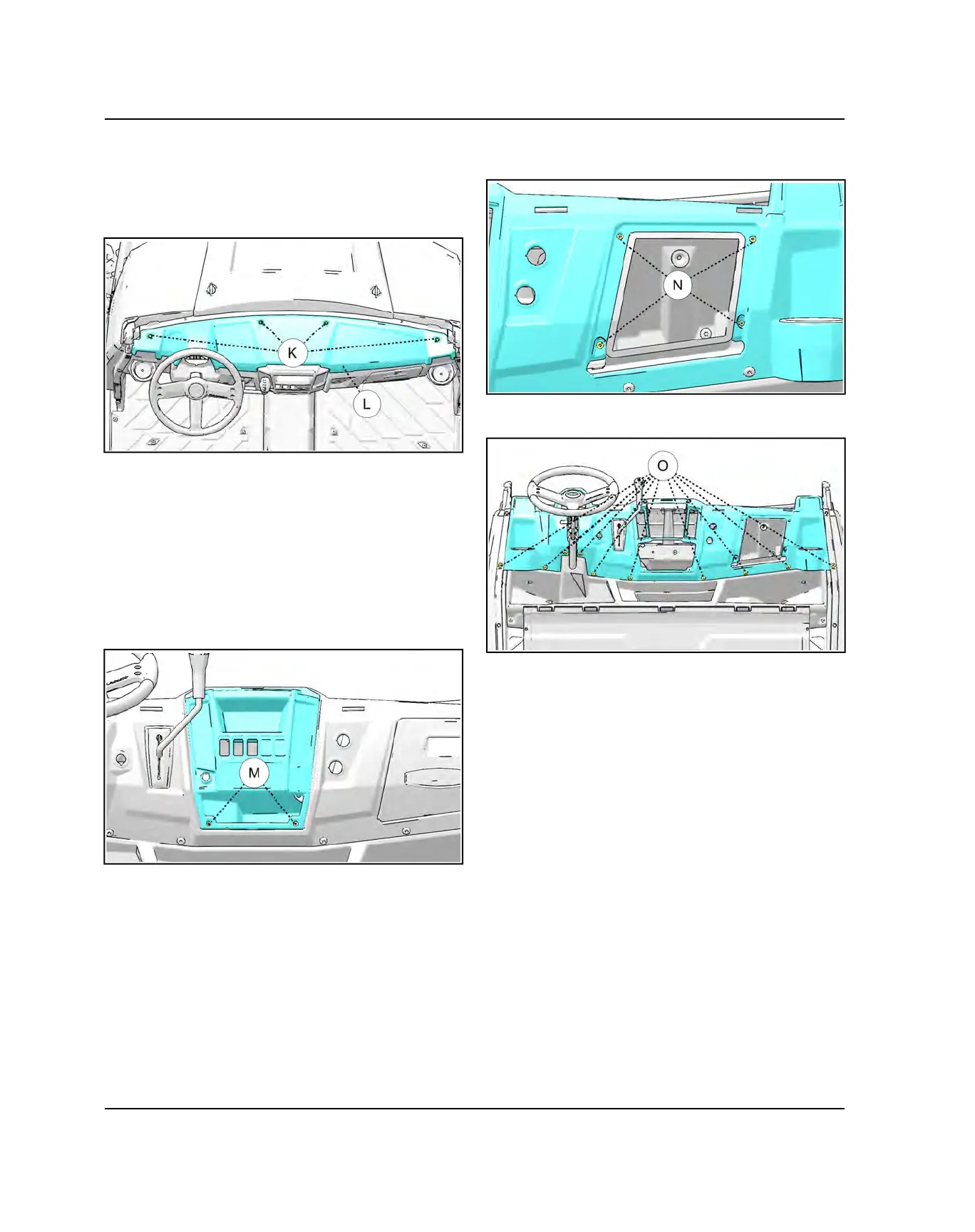 1. Remove the four push rivets (K) from the upper dash