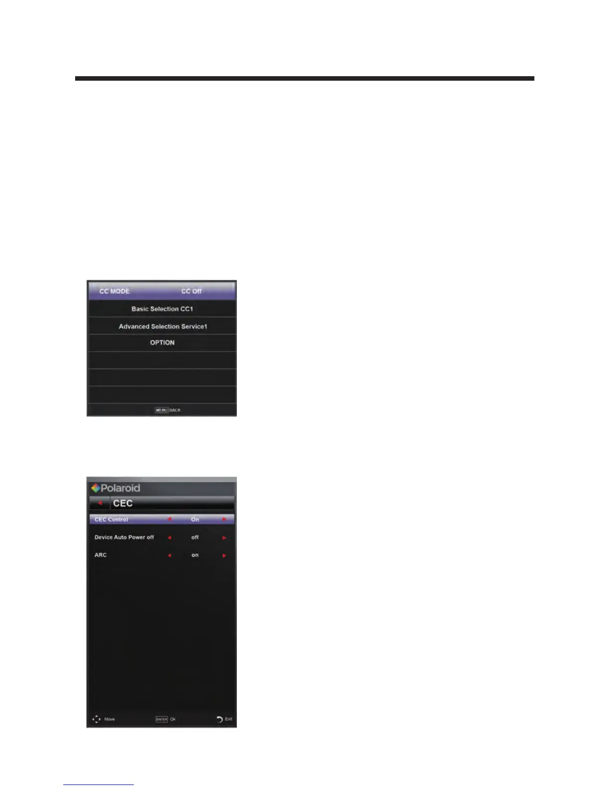 Press ► button to select HDMI CEC, then press Enter button to enter the sub-menu.