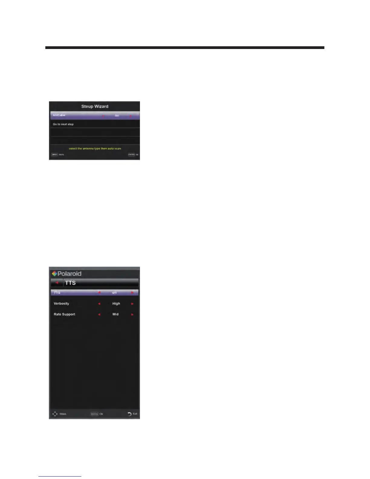 Press ► button to select TTS, then press Enter button to enter the sub-menu.