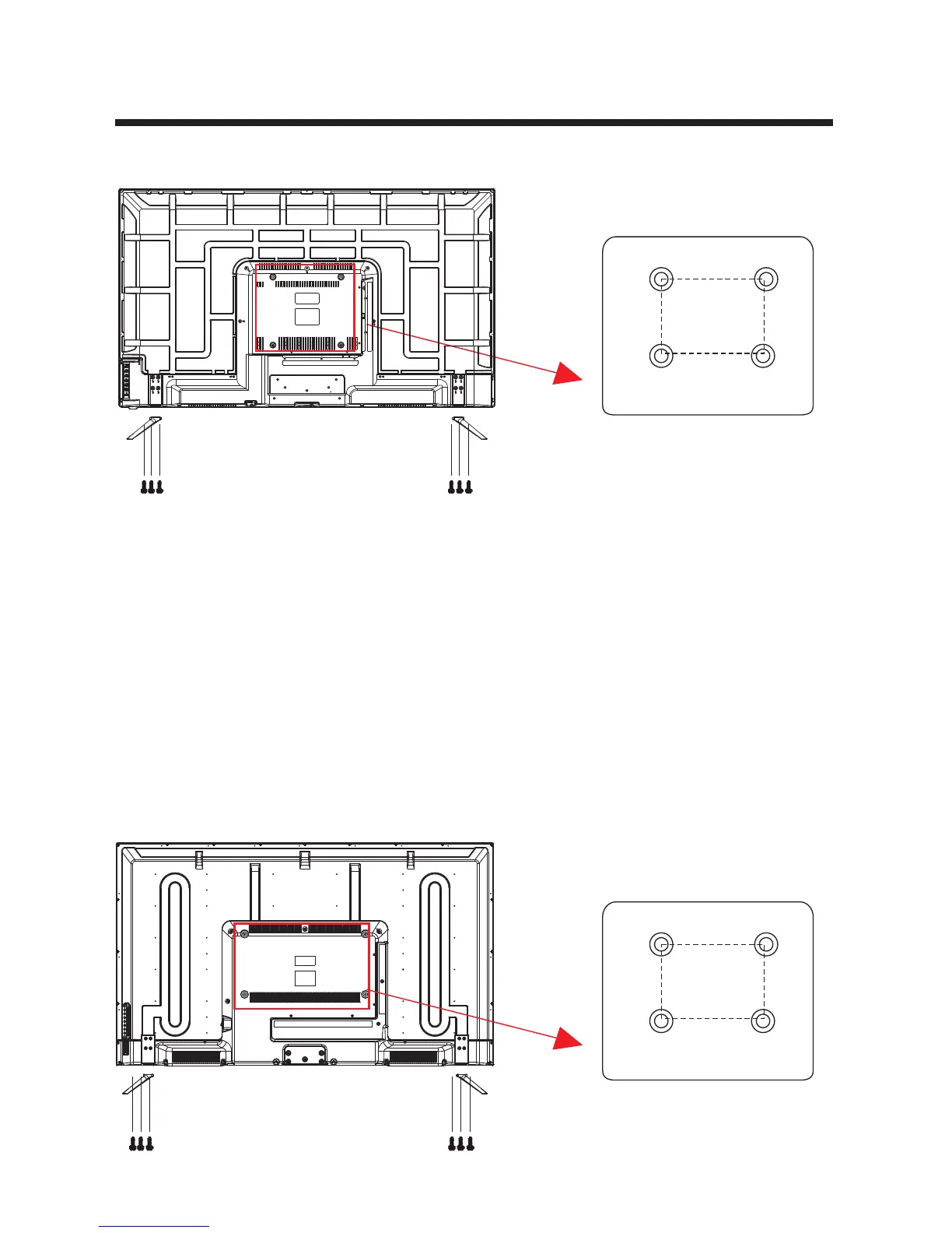 (NOT SUPPLIED). The VESA mounting pattern is 200 x 200mm. Remove the screws