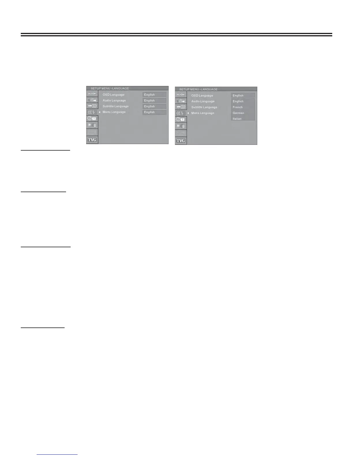 • The system will give priority to this setting as the DVD subtitle language. If the DVD played does not support the