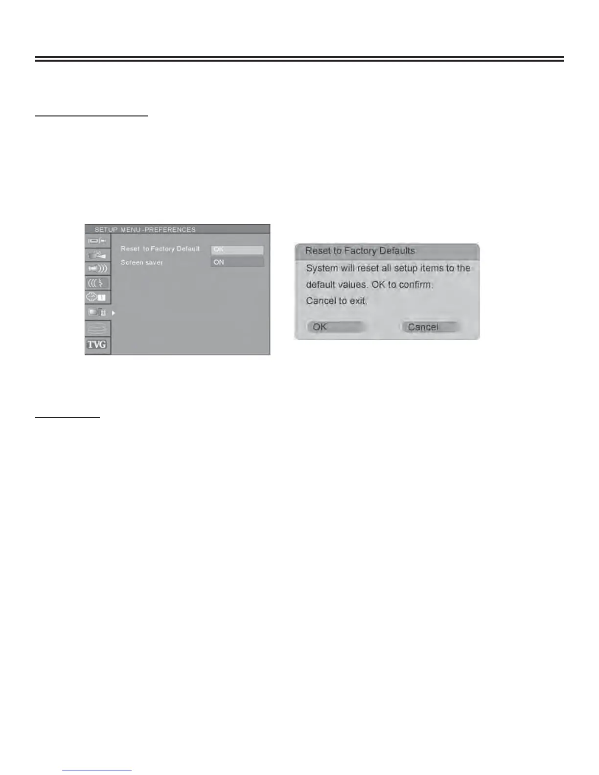 3. Press the “OK” button to restore all default settings.