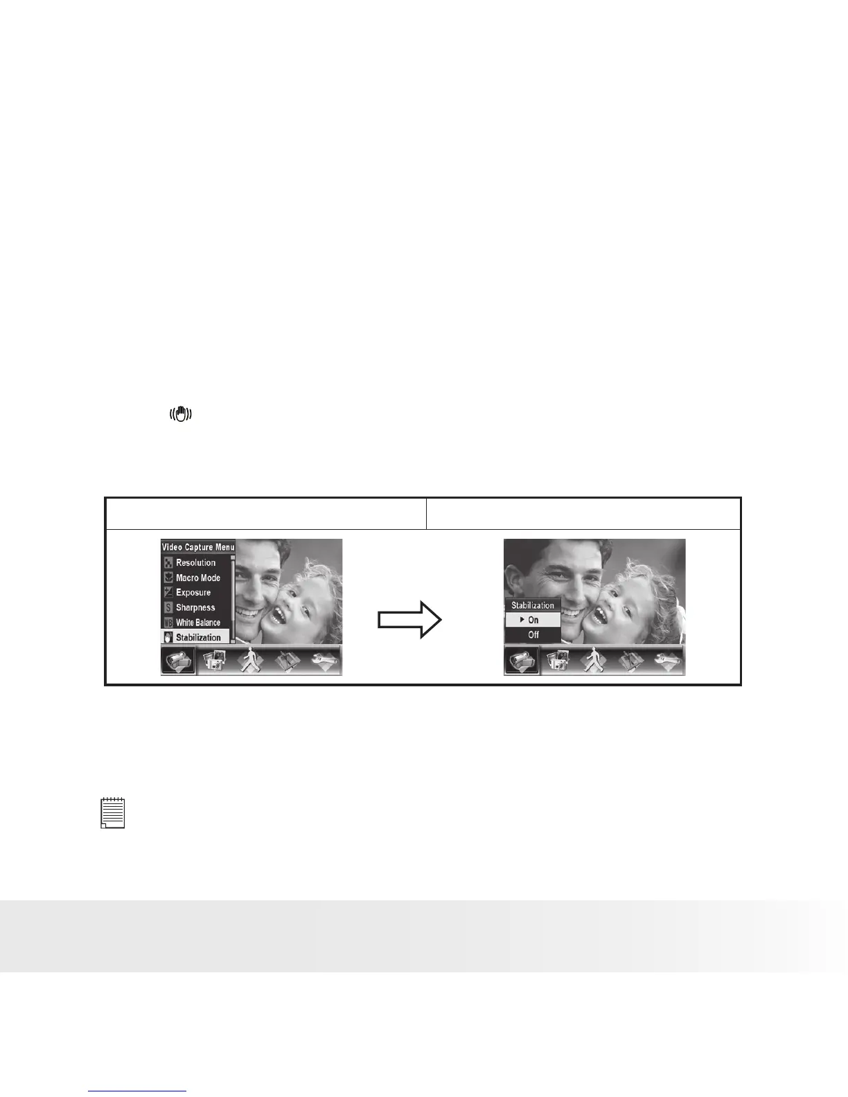 3. Use the Up/Down Buttons to select the Stabilization setting then press