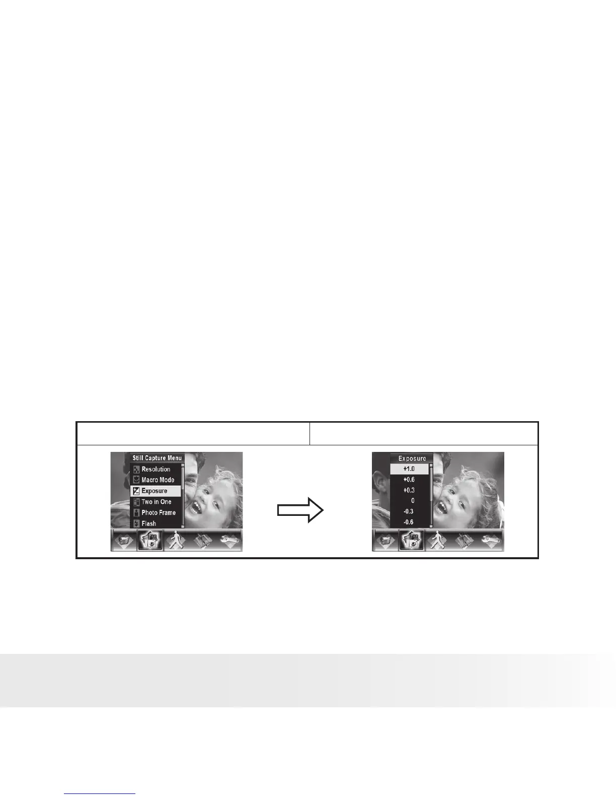 3. Use the Up/Down Buttons to move to the Exposure Option. Press the