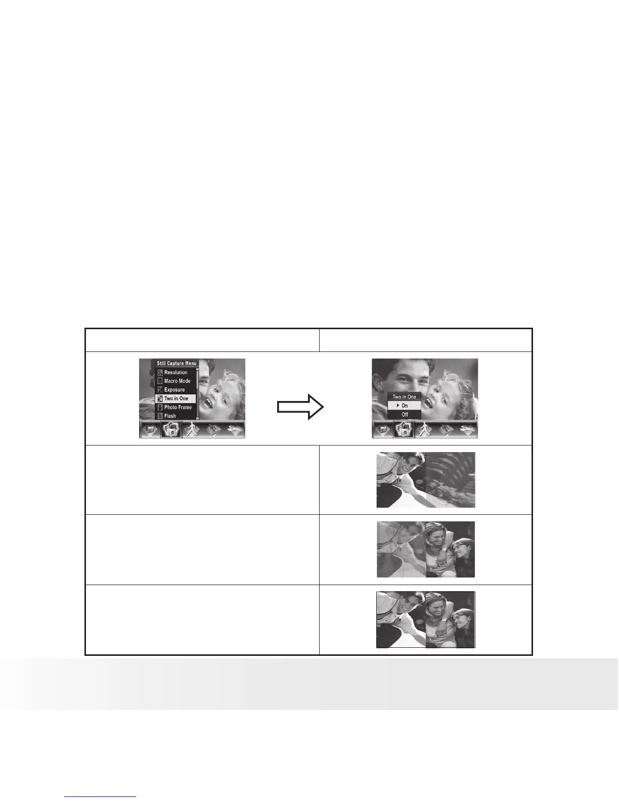 3. Use the Up/Down Buttons to select the Two in One feature then press