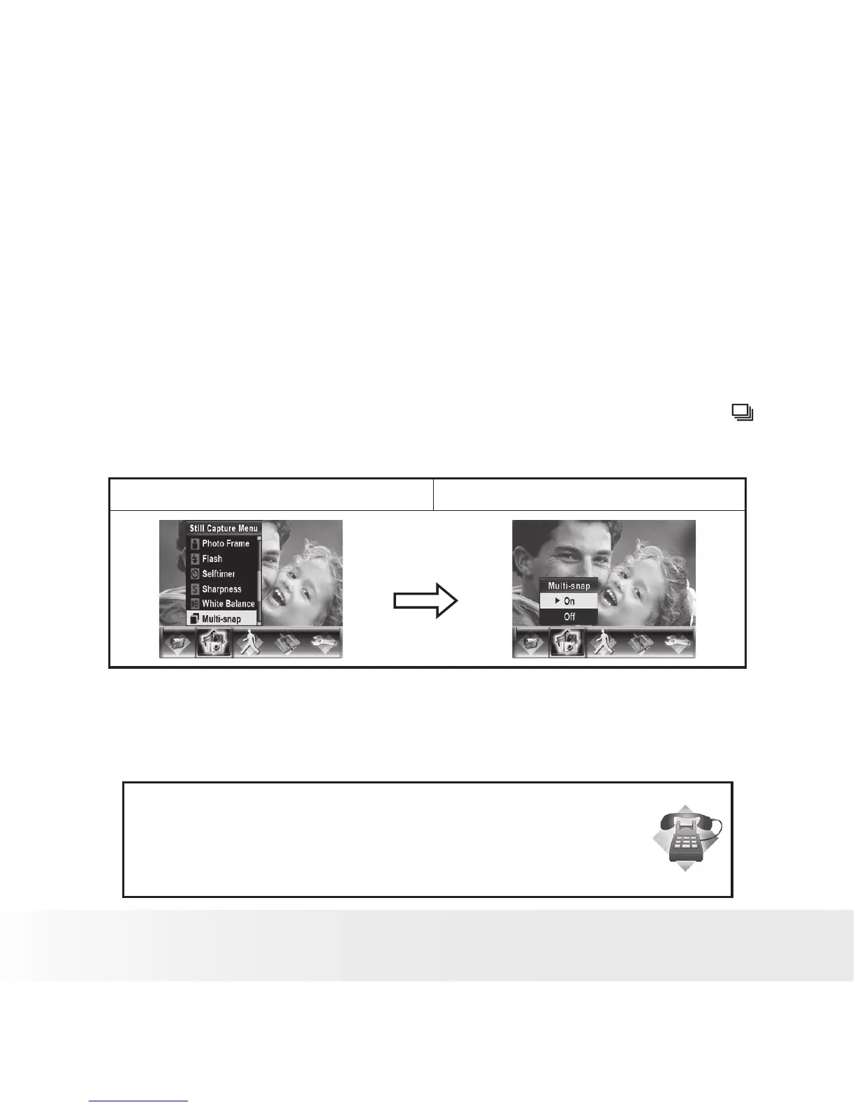 With the camera set to Multi-snap Mode, you can take five continuous