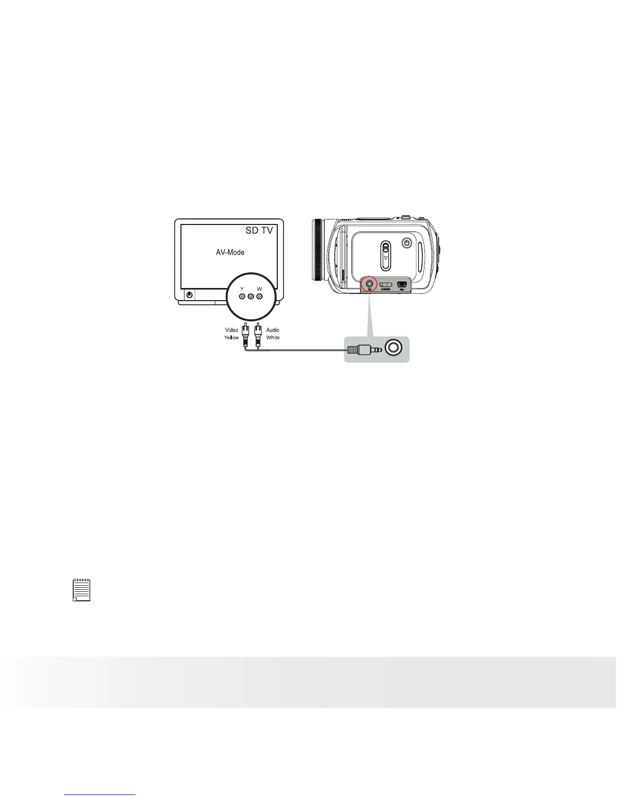 1. Connect one end of the AV cable to your camera’s AV Out port.