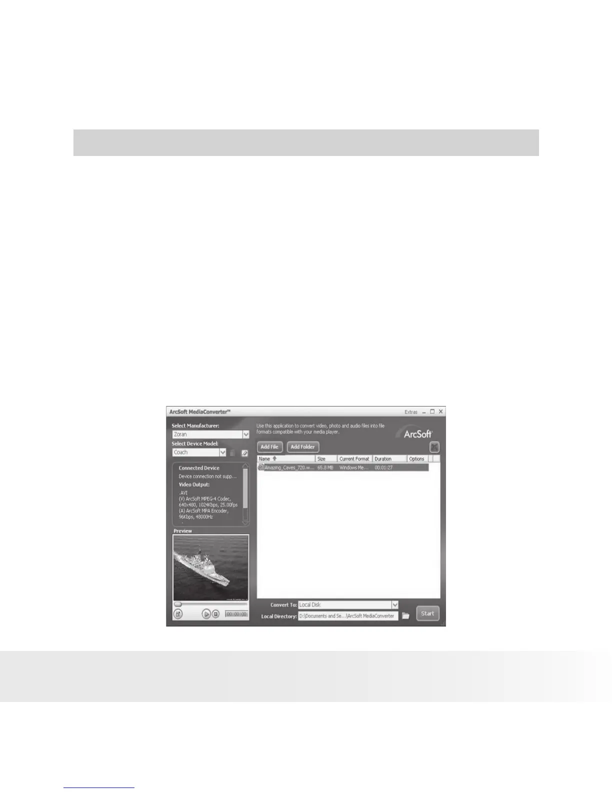 1. Install the ArcSoft MediaConverter onto your PC ( Refer to section