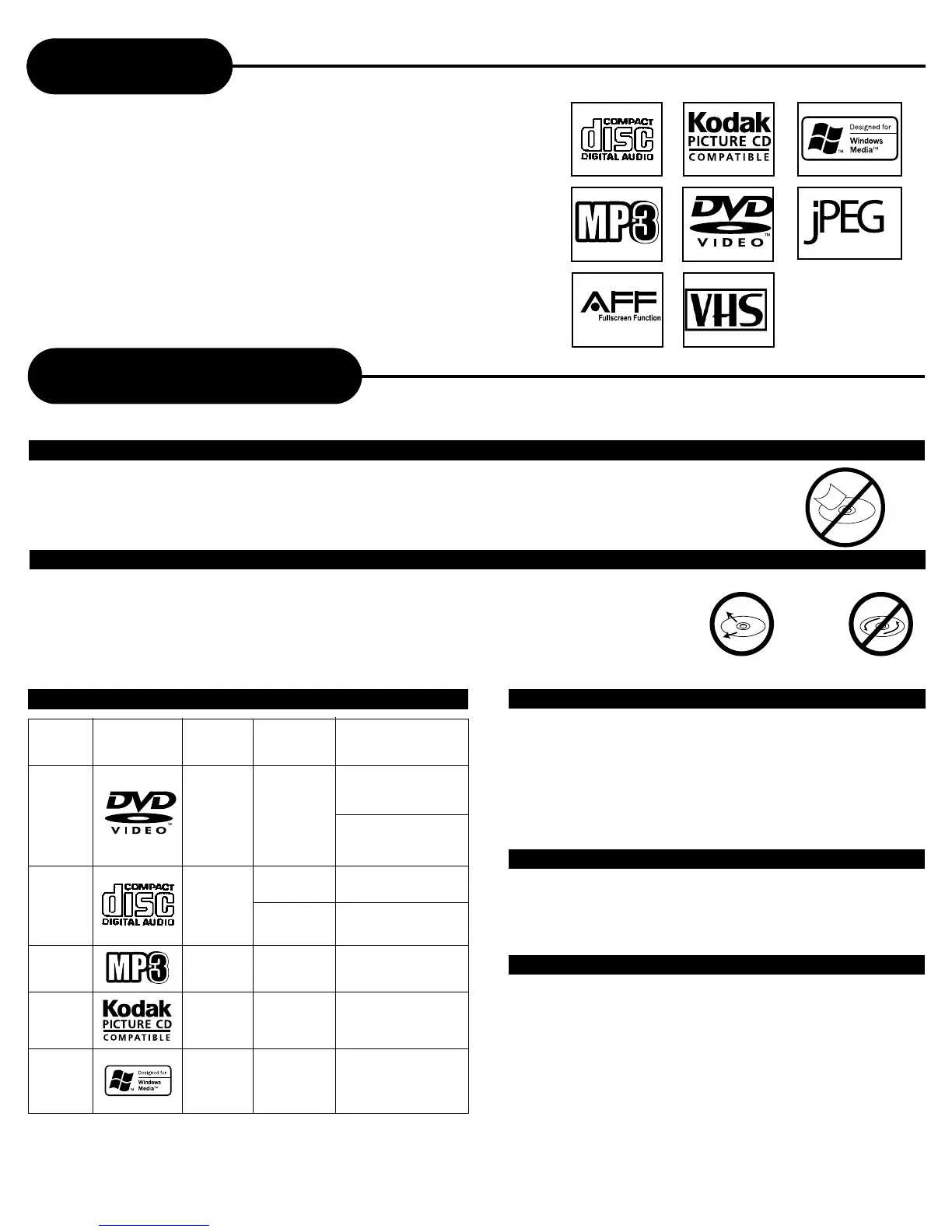 tipos de discos del mercado y VHS videocinta. Su reproductor le permitirá disfrutar
