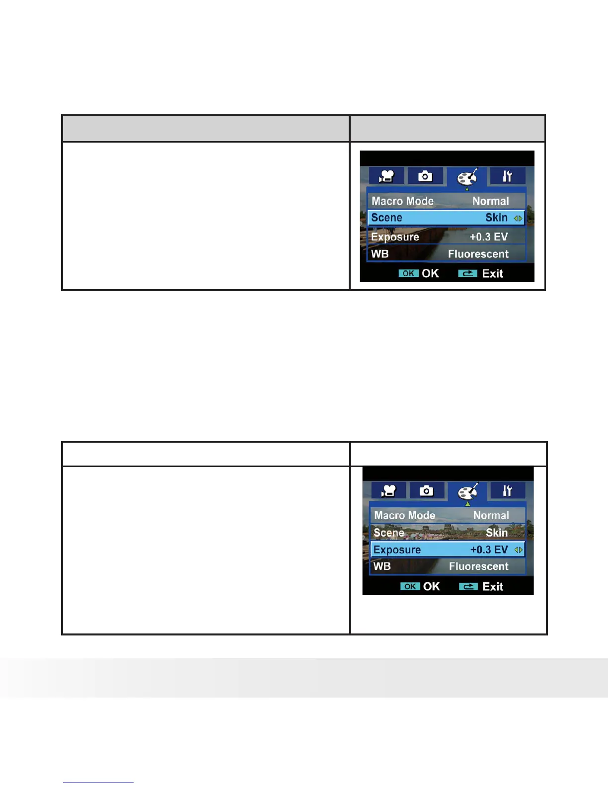 buttons to select Exposure.