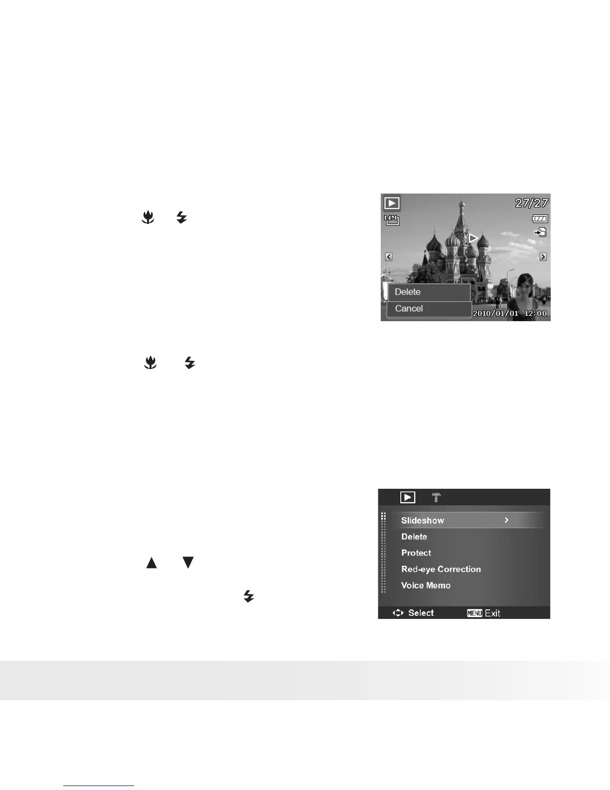 Use the Delete button on your camera to delete or mark an image/video/