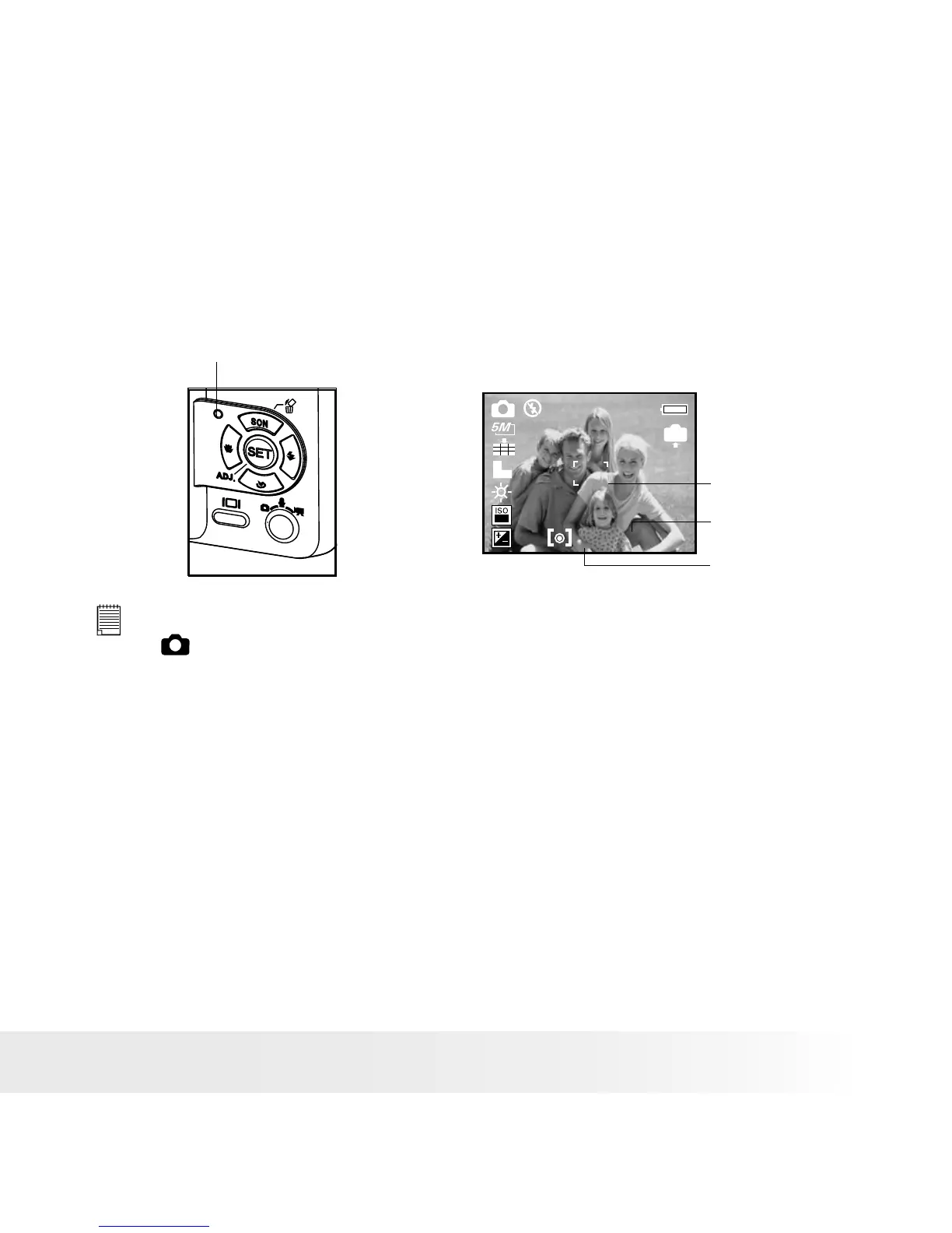 3. Press the Shutter button halfway to set the exposure and focus. The