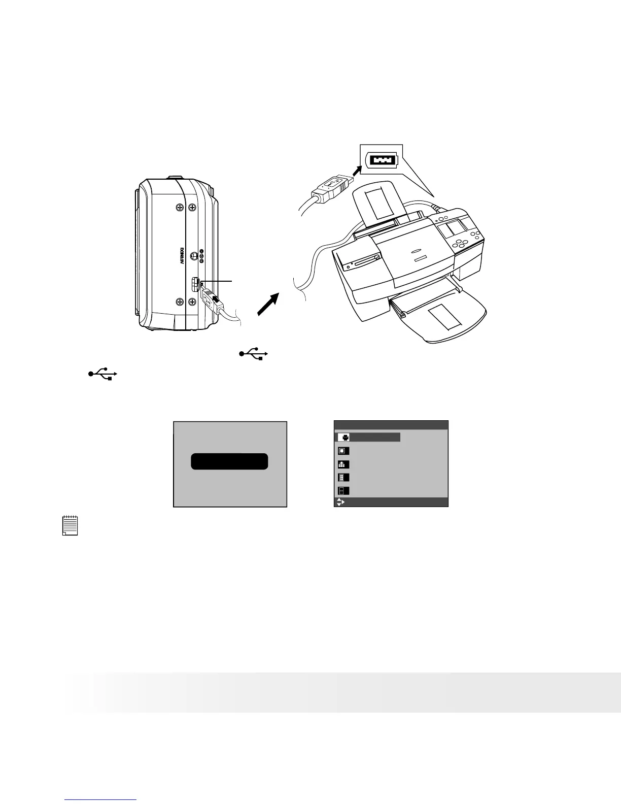Do not connect the USB cable with the camera and printer until Printer mode