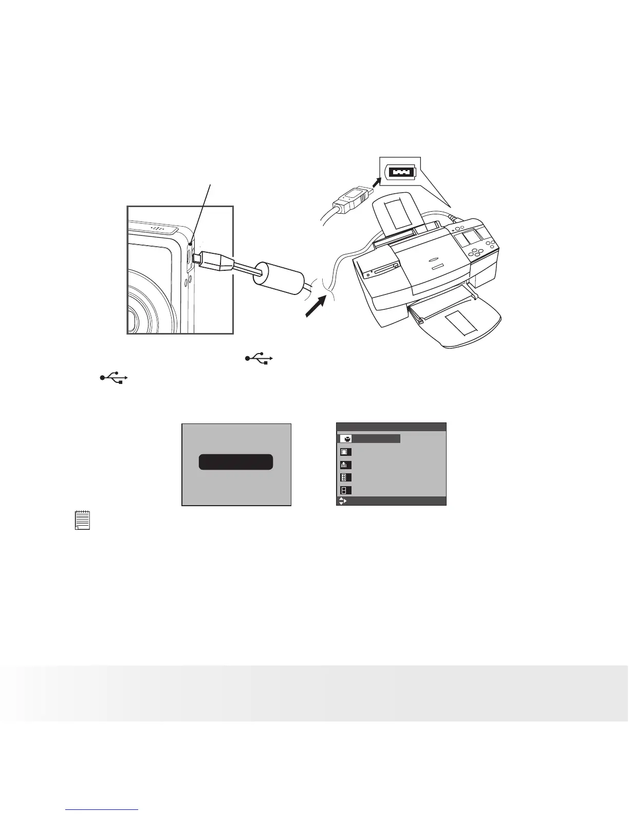 • Do not connect the USB cable with the camera and printer until Printer mode