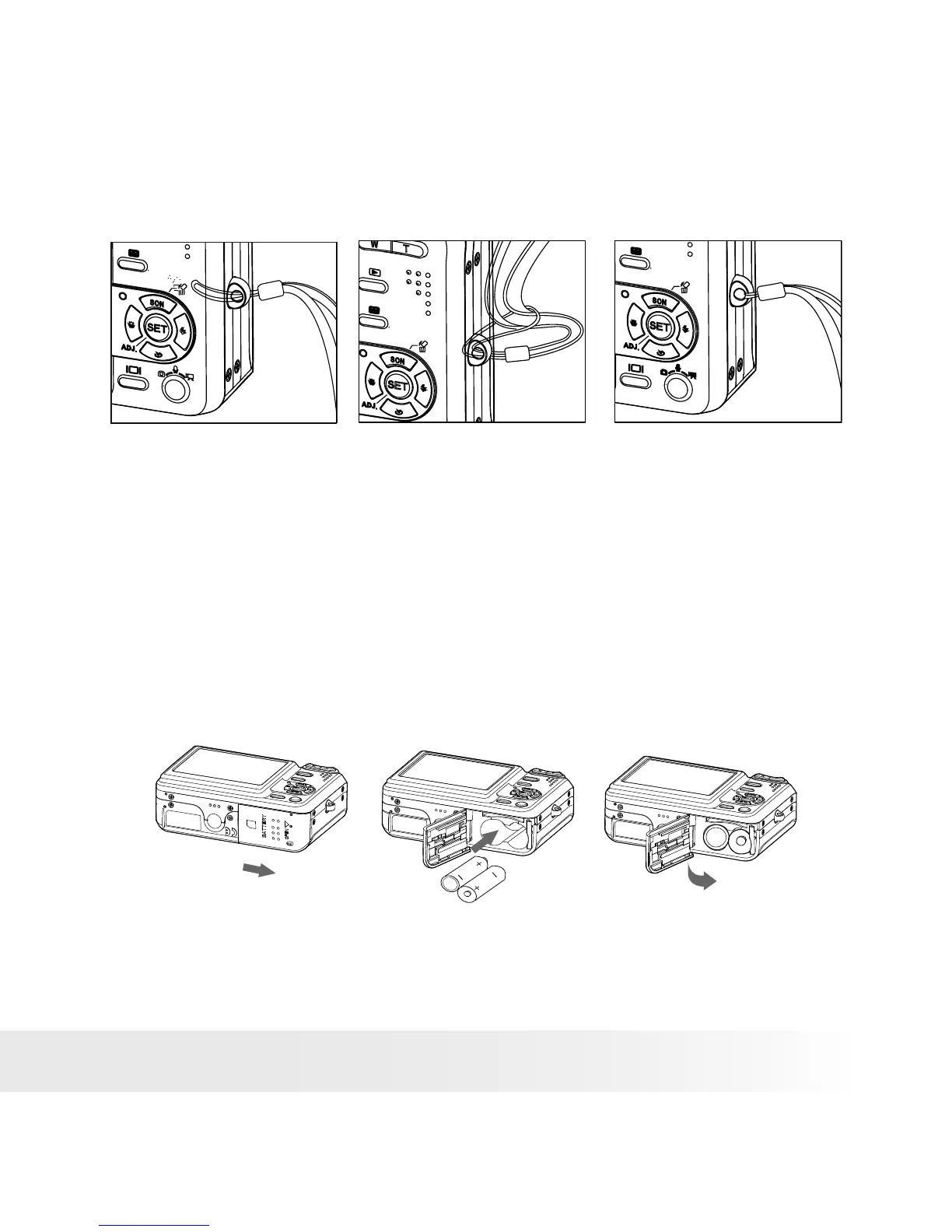 1. Open the camera battery door by pushing it outwards as illustrated.