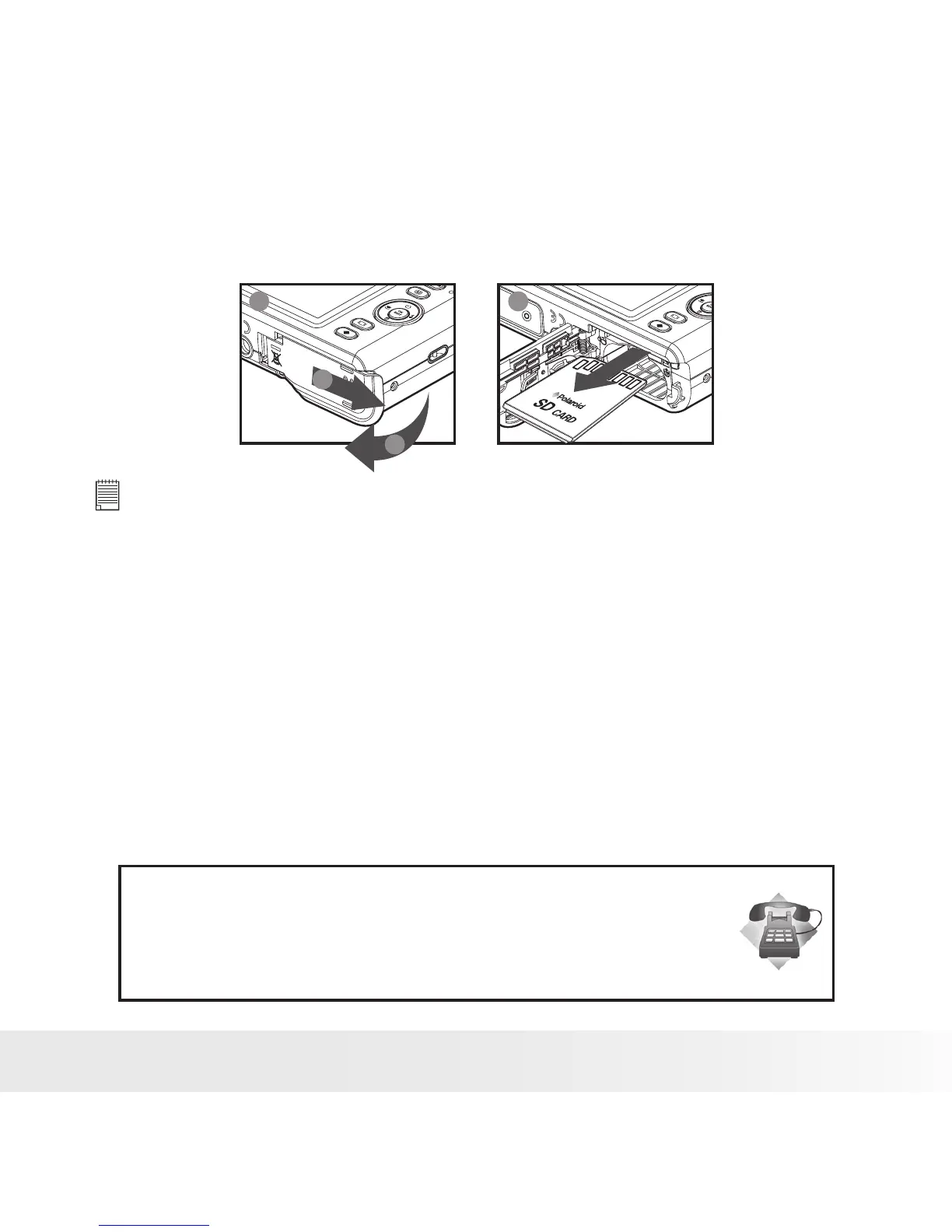 • Never insert any other object into the camera’s SD card slot. Doing so results