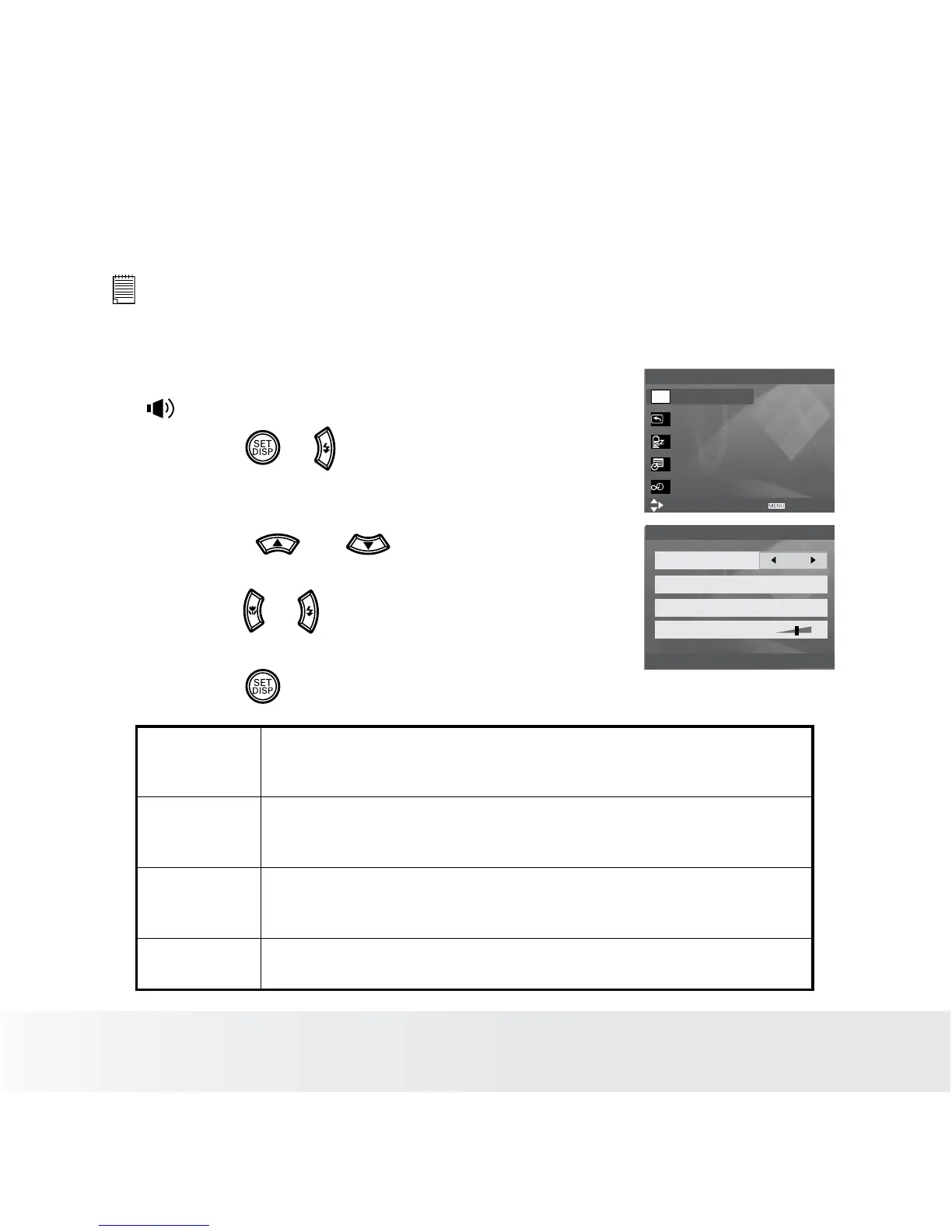 Volume Adjusting the volume of the shutter sound, start-up sound, beep and