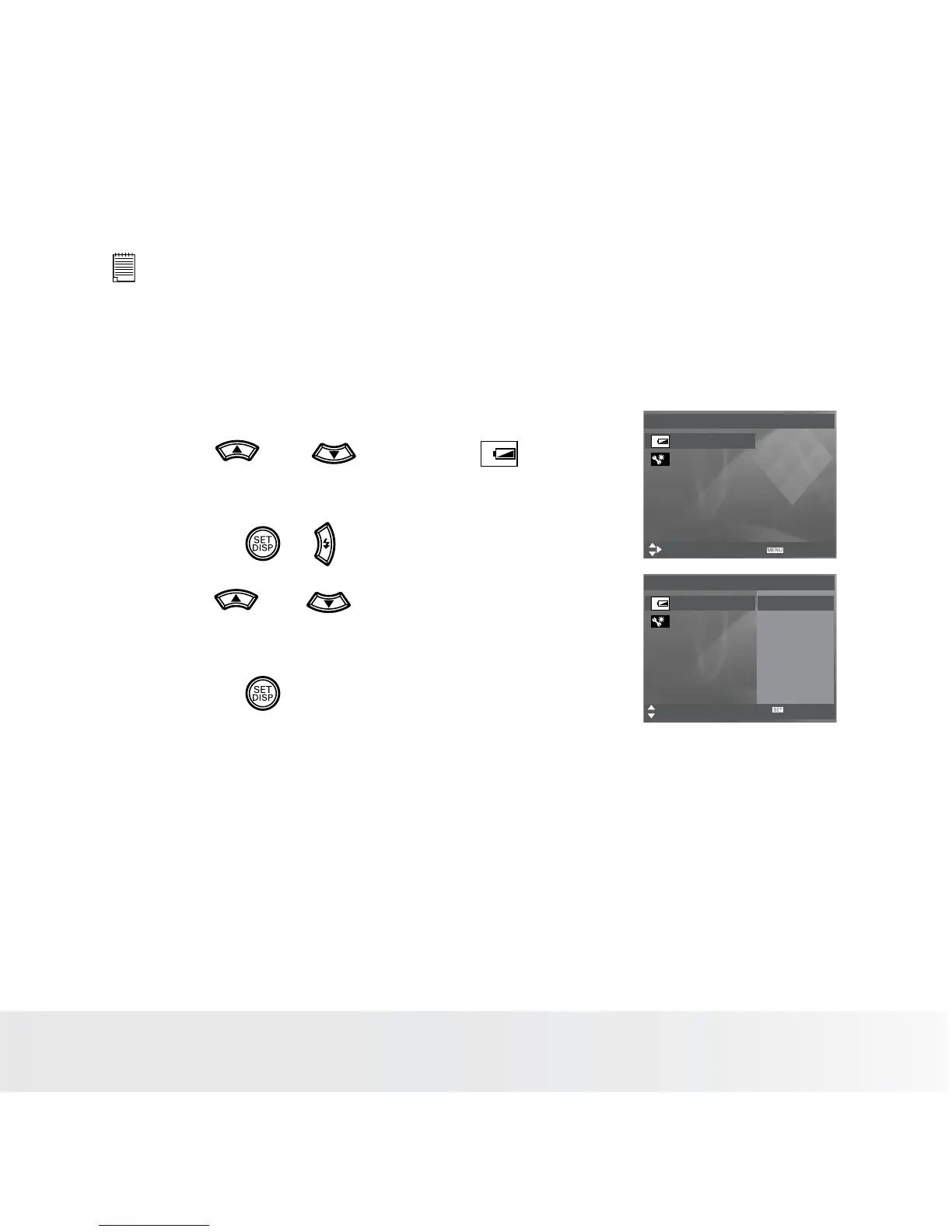 2. Press or to select (Battery