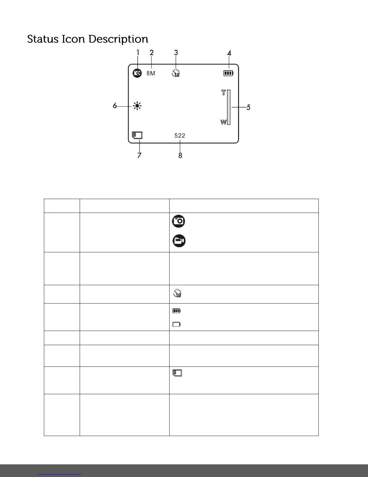 The following icons appear on the LCD screen and indicate the selected menu options and