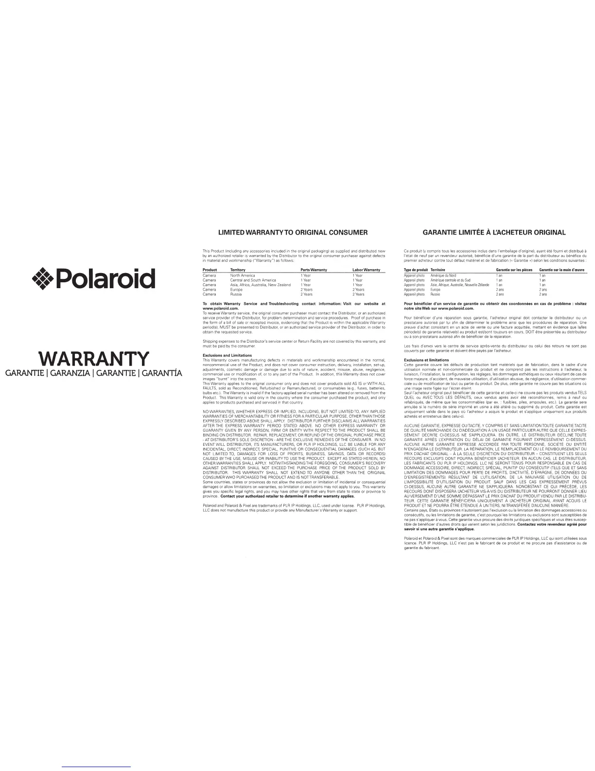 LIMITEDWARRANTYTO ORIGINAL CONSUMER