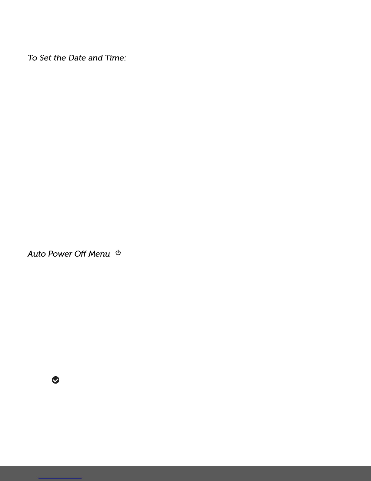 2) Press the LEFT or RIGHT direction control button to scroll and select the Auto Power Off menu.