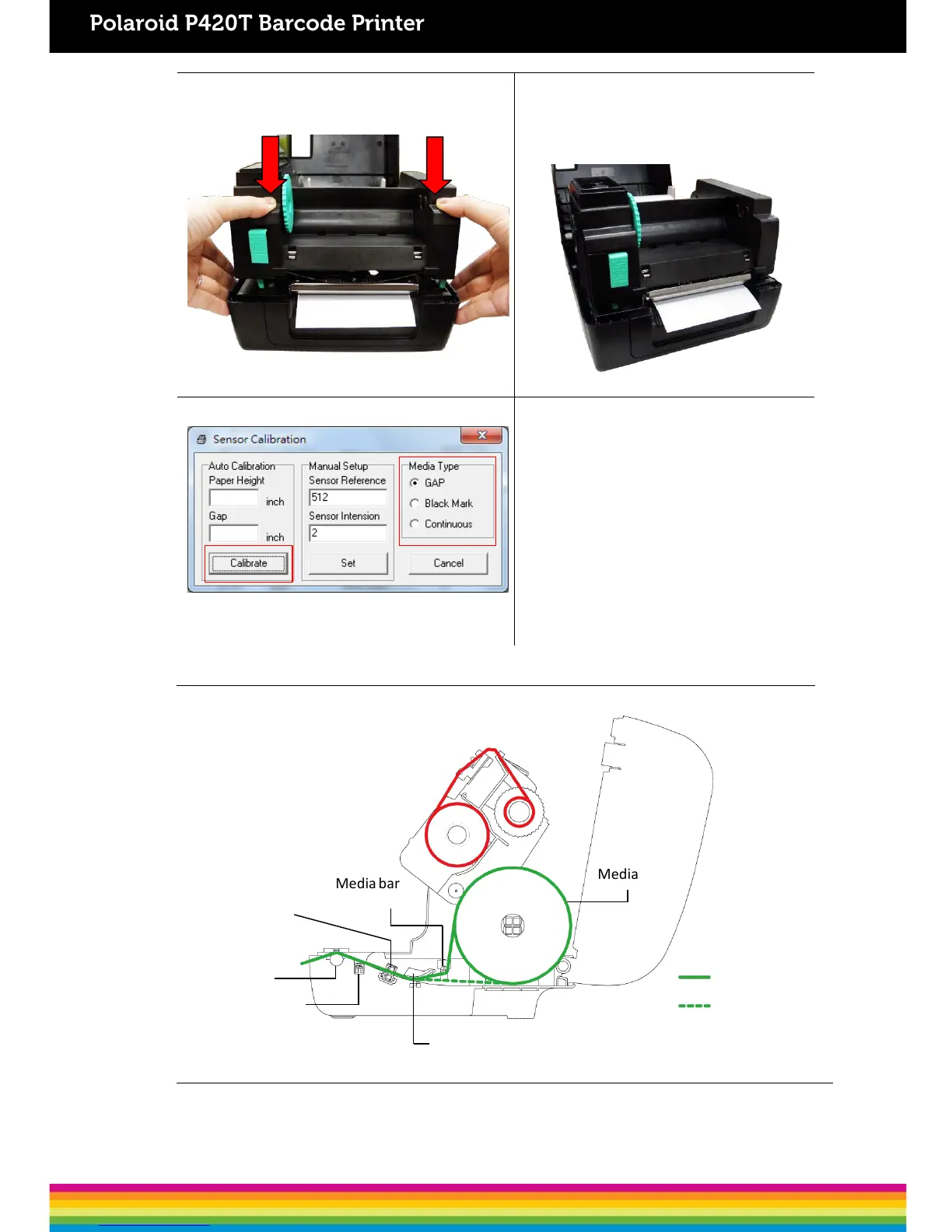 Note: Please calibrate the gap/ black mark sensor when changing media.
