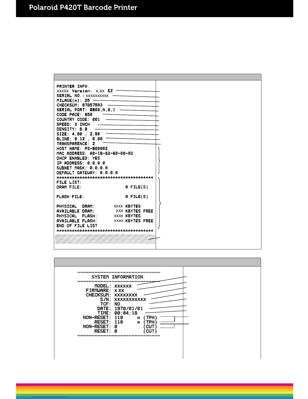 Printer will print its configuration after gap/black mark sensor calibration. Self-test printout