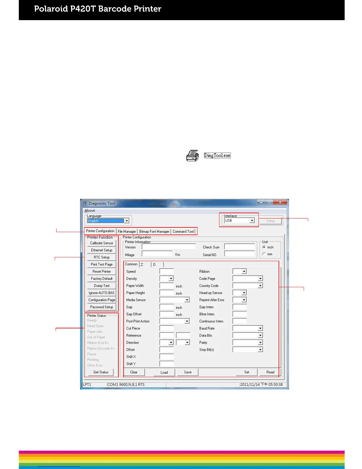 2. There are four features (Printer Configuration, File Manager, Bitmap Font Manager,