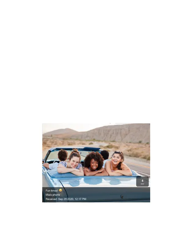 Additionally, during a slideshow, a new photo alert on the lower right